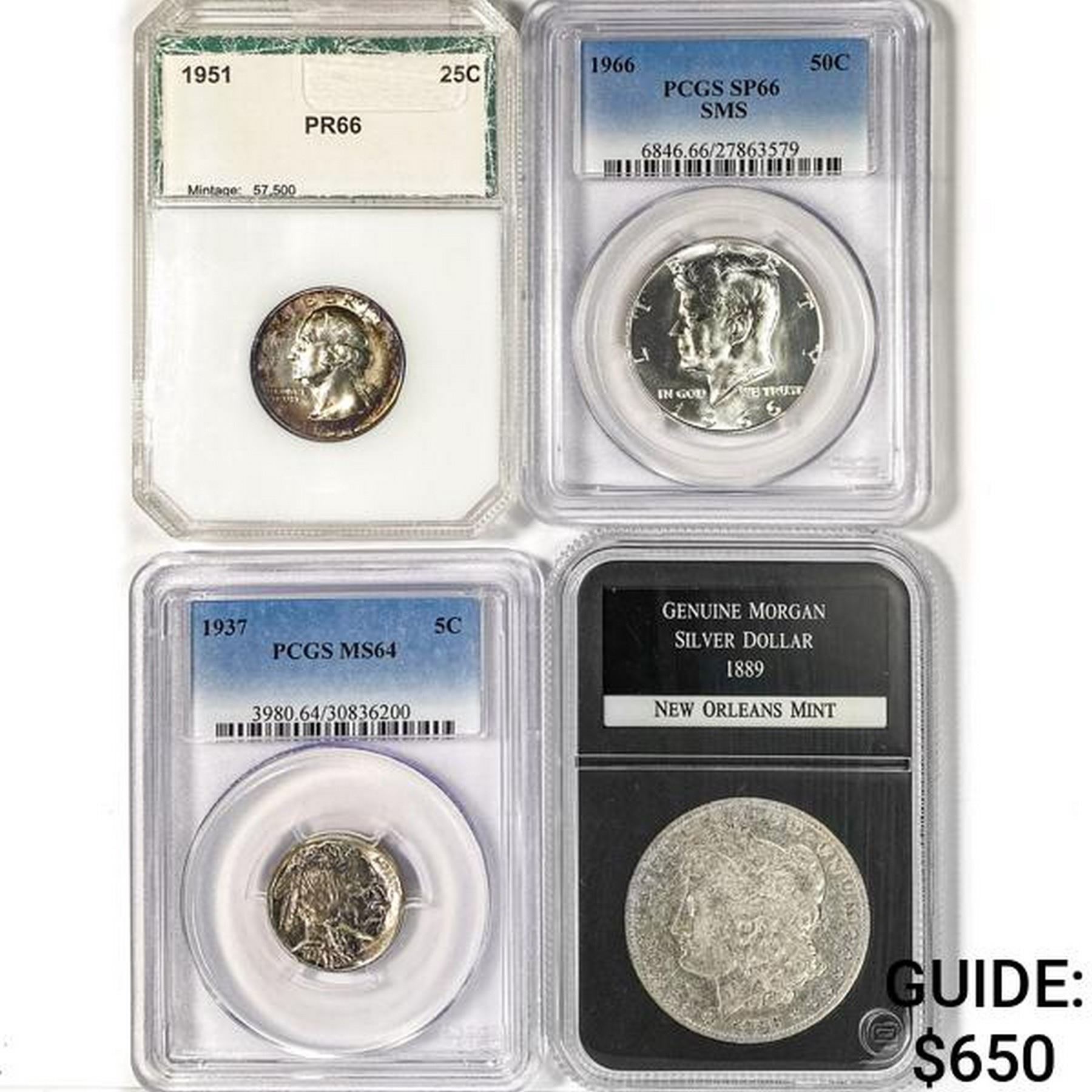e. Coins sold referencing a third-party grading service are sold “AS IS” without any express or implied warranty, except for a guarantee by GSA that they are genuine. Removal or alteration of the holder, voids all of Bidder’s claims concerning that Product. Certain warranties may be available from the grading services and Bidders are referred to them for further details: Numismatic Guaranty Corporation (NGC), PO Box 4776, Sarasota, FL 34230, www.ngccoin.com/services/writtenguarantee.asp; Professional Coin Grading Services (PCGS), PO Box 9458, Newport Beach, CA 92658, www.pcgs.com/guarantee.html; ANACS, 6555 S. Kenton St., Ste. 303, Englewood, CO 80111; and Independent Coin Grading Co. (ICG), 7901 East Bellview, Ave., Suite 50, Englewood, CO 80111.