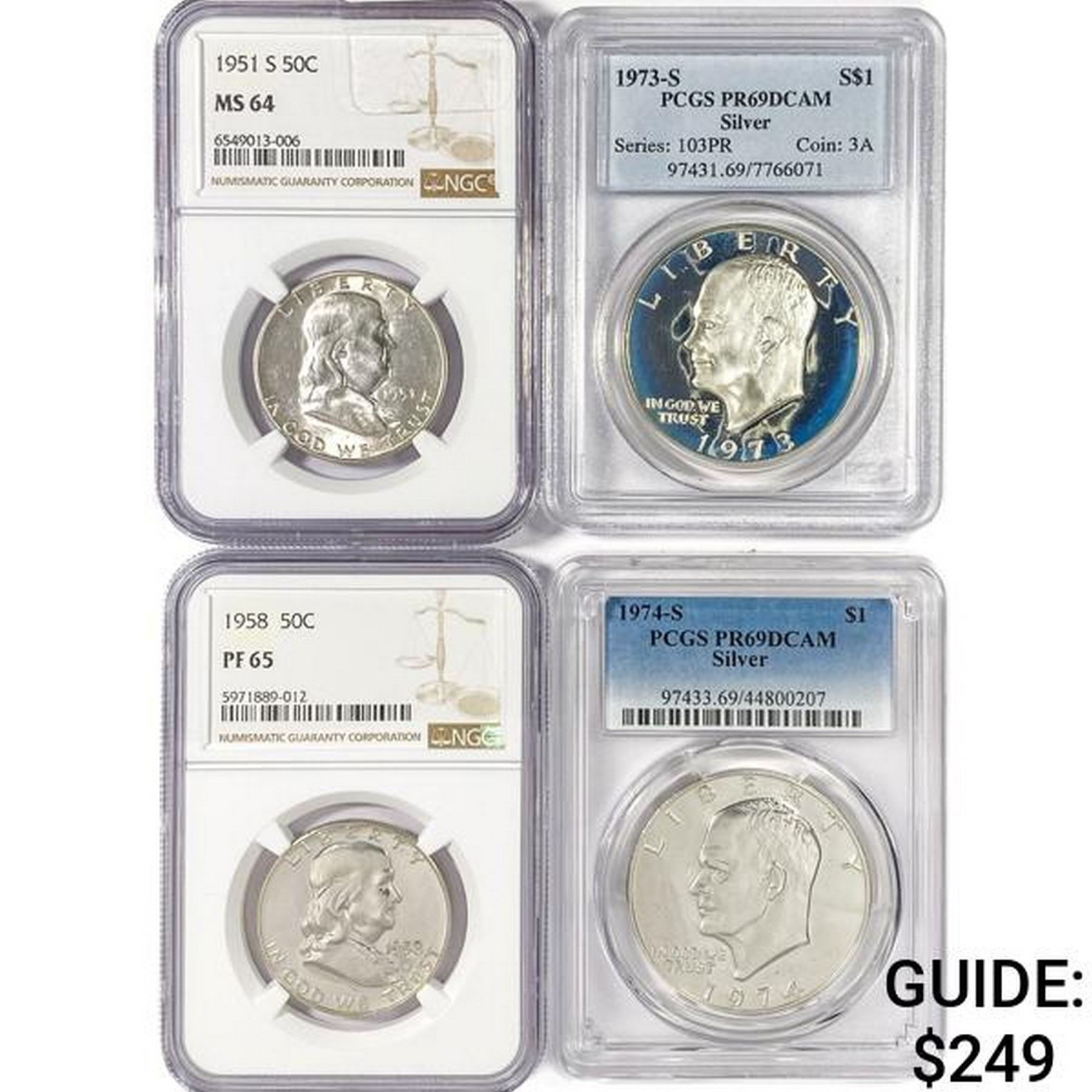 (4) US Varied Silver Coinage NGC,PCGS 1951-1974