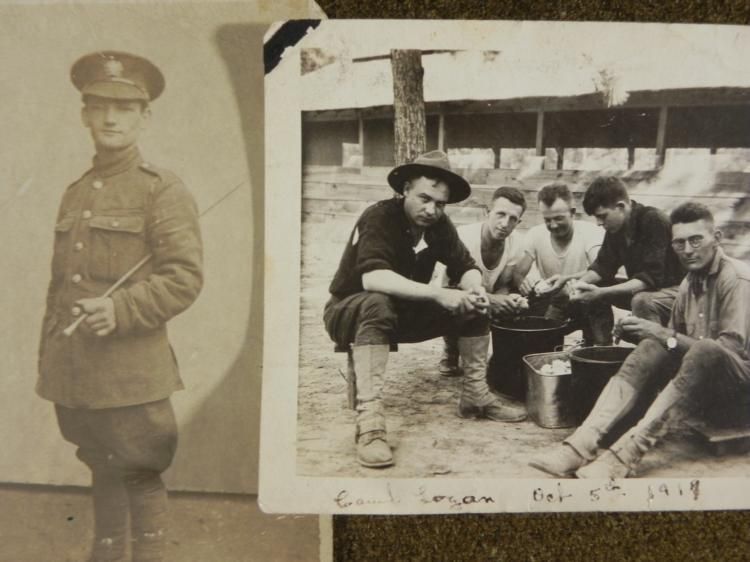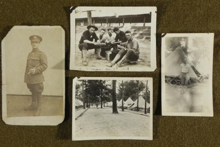 FOUR US WWI DOUGHBOYS ORIGINAL WAR PHOTOS + UNIFORM STUDIO SHOT MEDIUM SIZE FORMAT