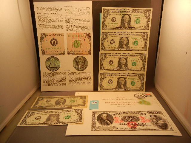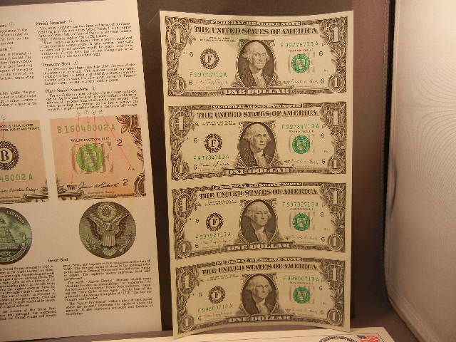 4- Uncut One Dollar Notes , & 1 Dollar Federal Reserve Note &1976 Two Dollar Note