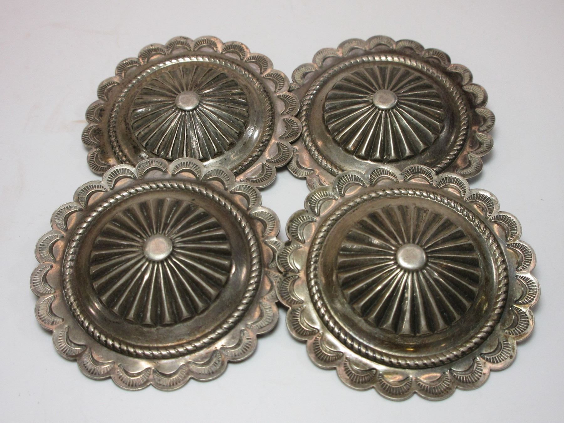 4 Unmarked Stamped Scalloped Conchos- 2.25"