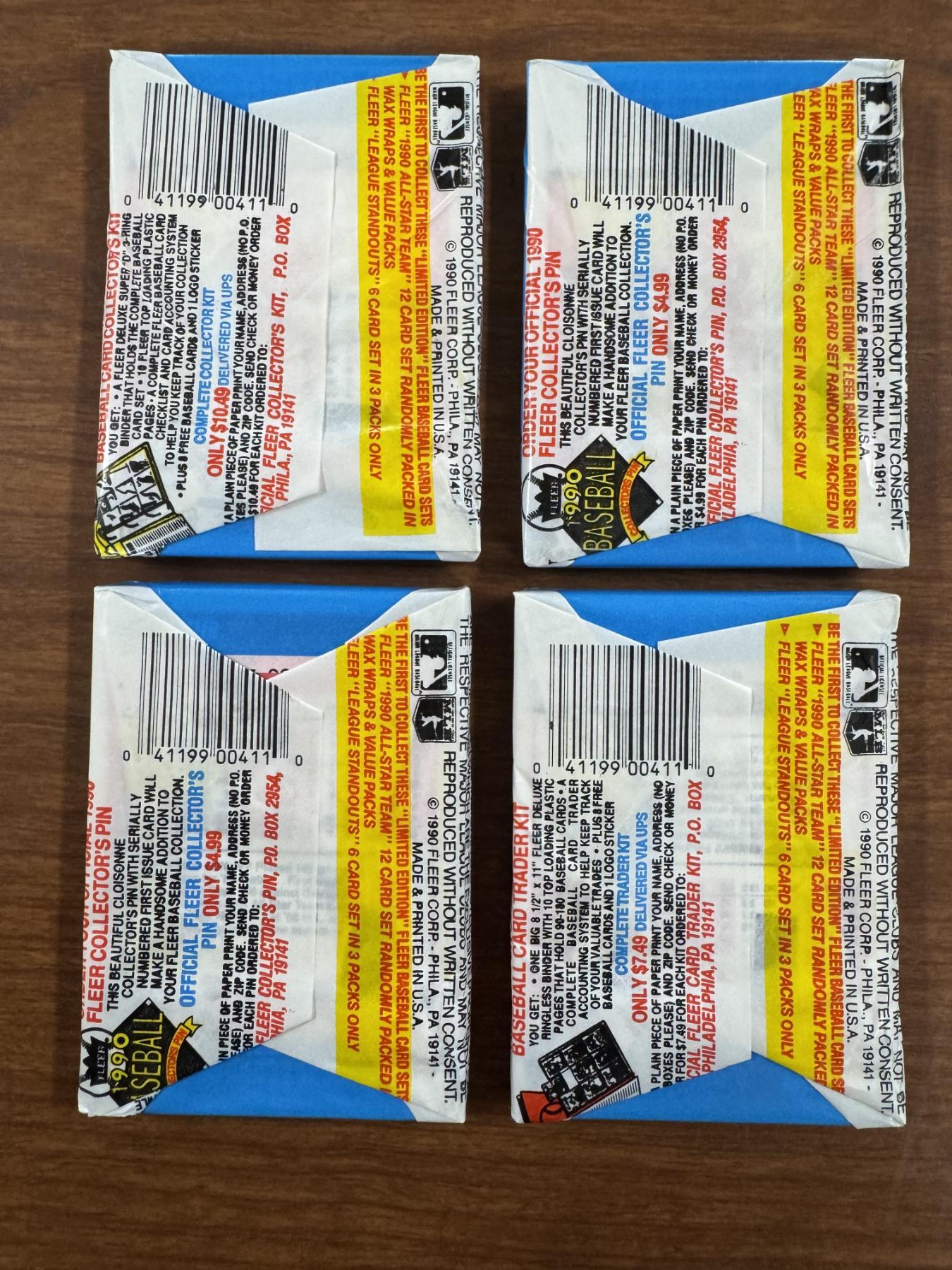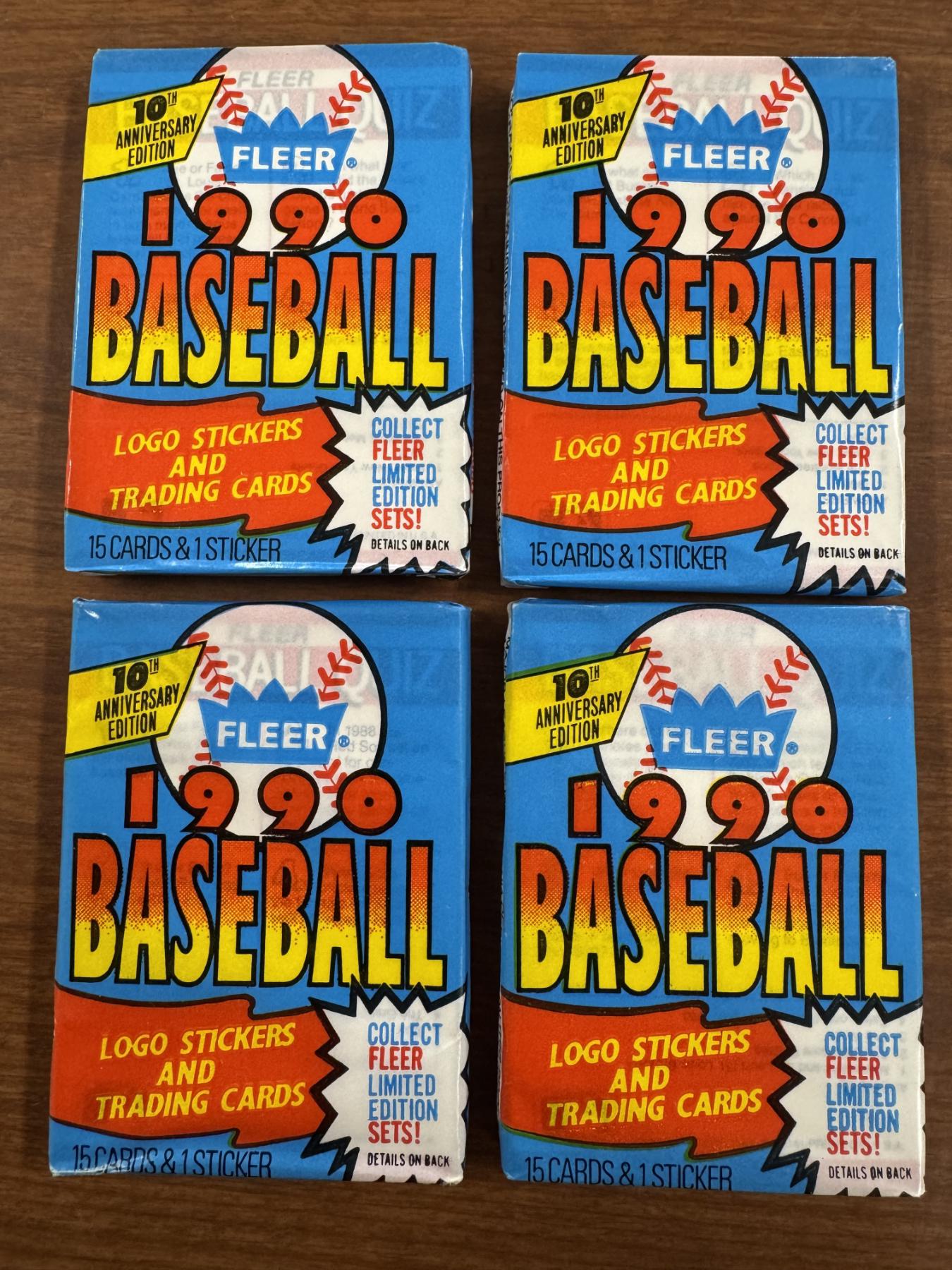 4 - Unopened 1990 Fleer Major League Baseball Wax Packs - Mint Condition