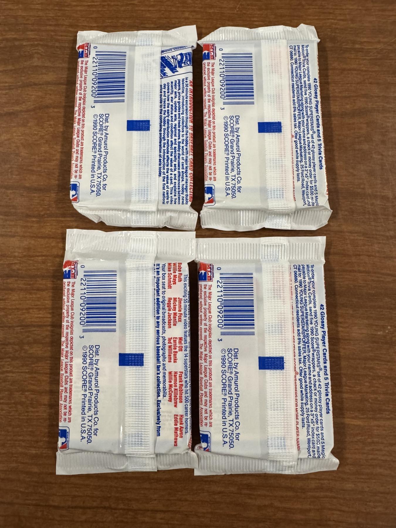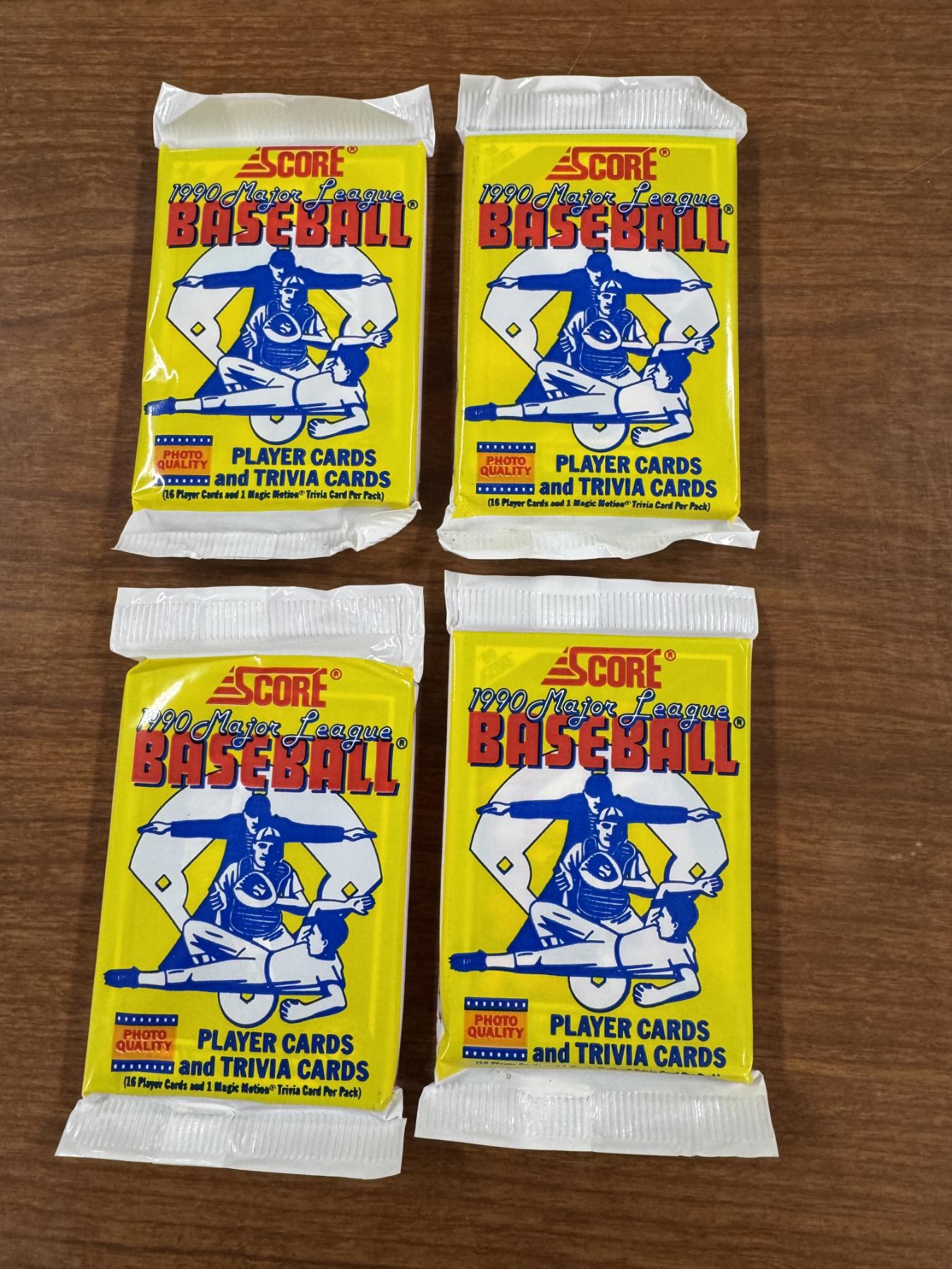 4 Unopened 1990 Score Baseball Wax Pack Football Cards - 16 Cards Per Pack