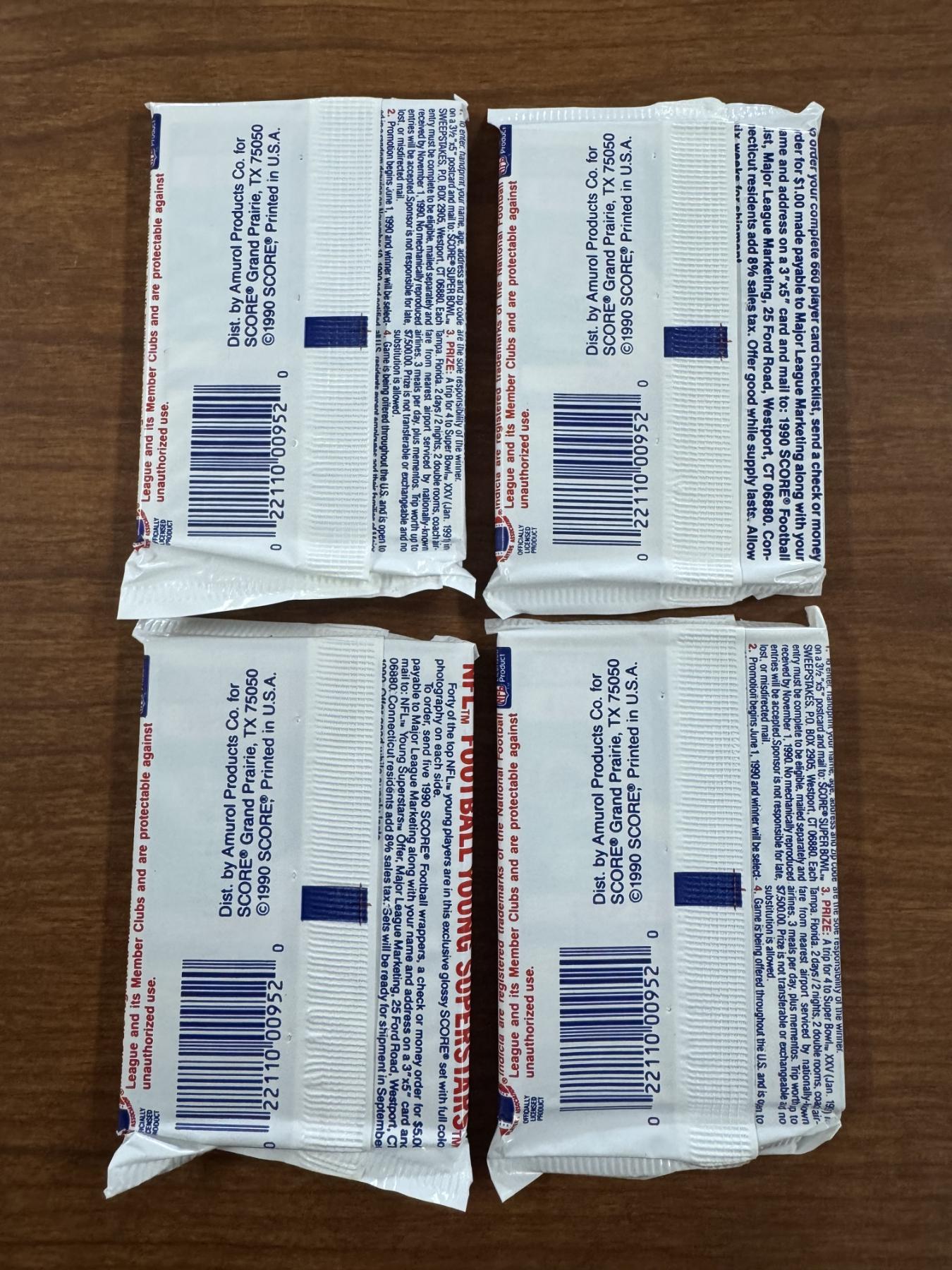 4 - Unopened 1990 Score NFL Football Wax Packs - Mint Condition