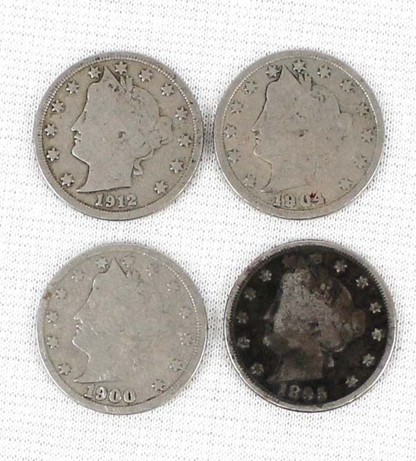 4 V Nickels, includes 1895, 1900, 1904, and 1912