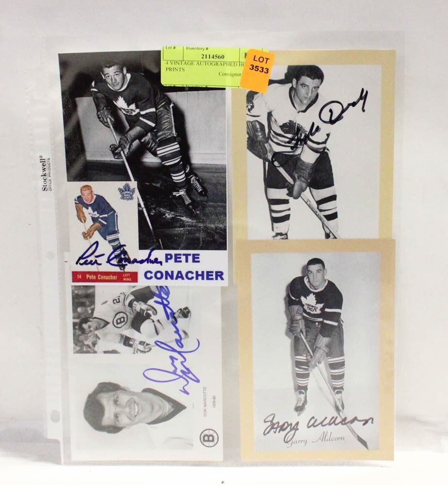 4 VINTAGE AUTOGRAPHED HOCKEY PRINTS