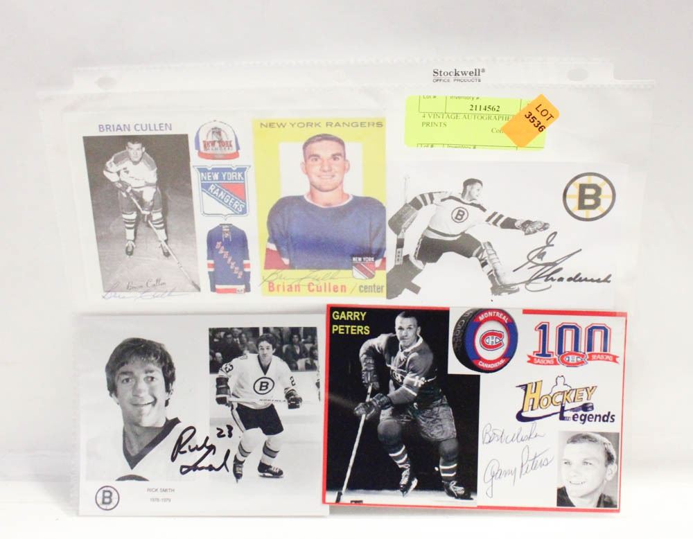 4 VINTAGE AUTOGRAPHED HOCKEY PRINTS
