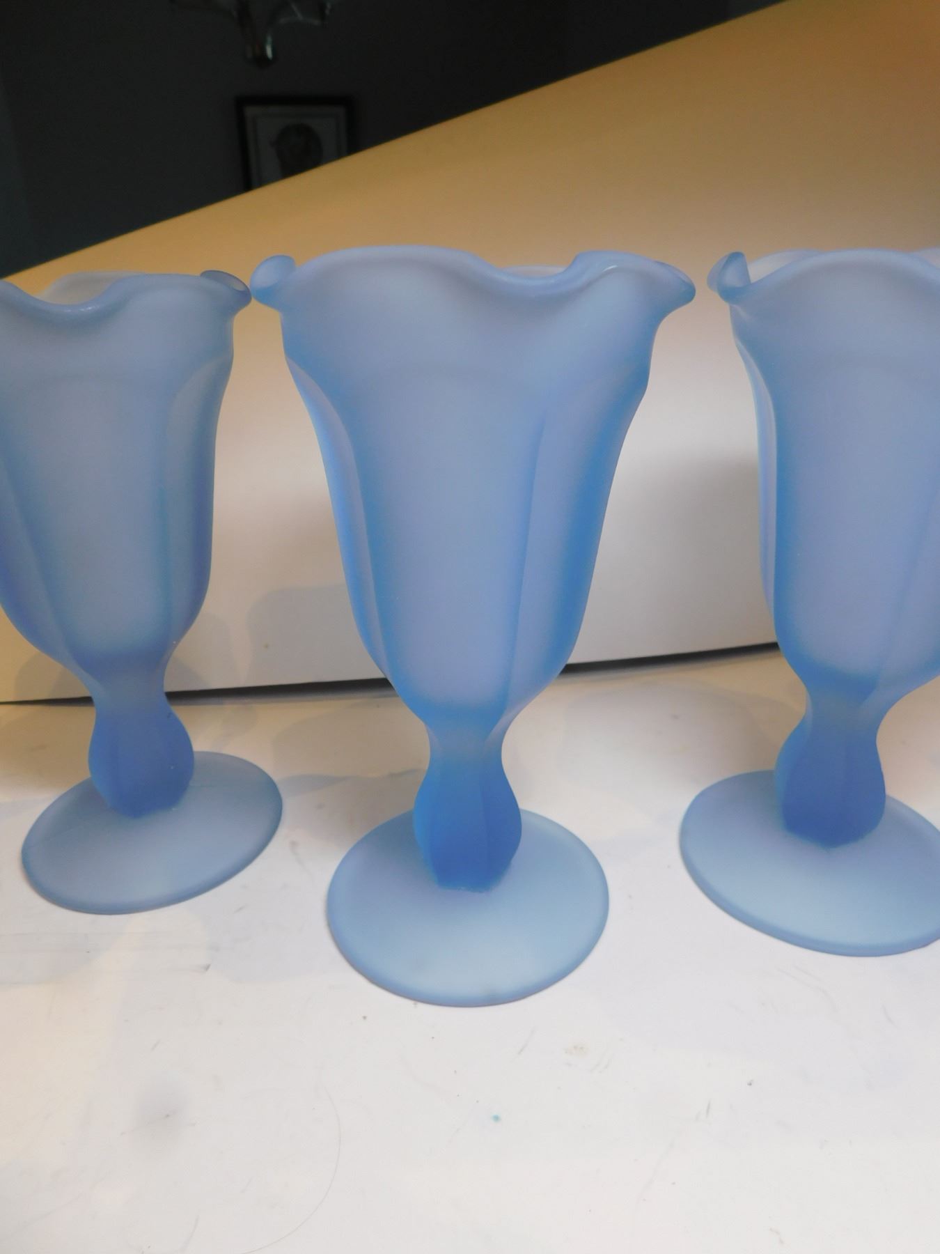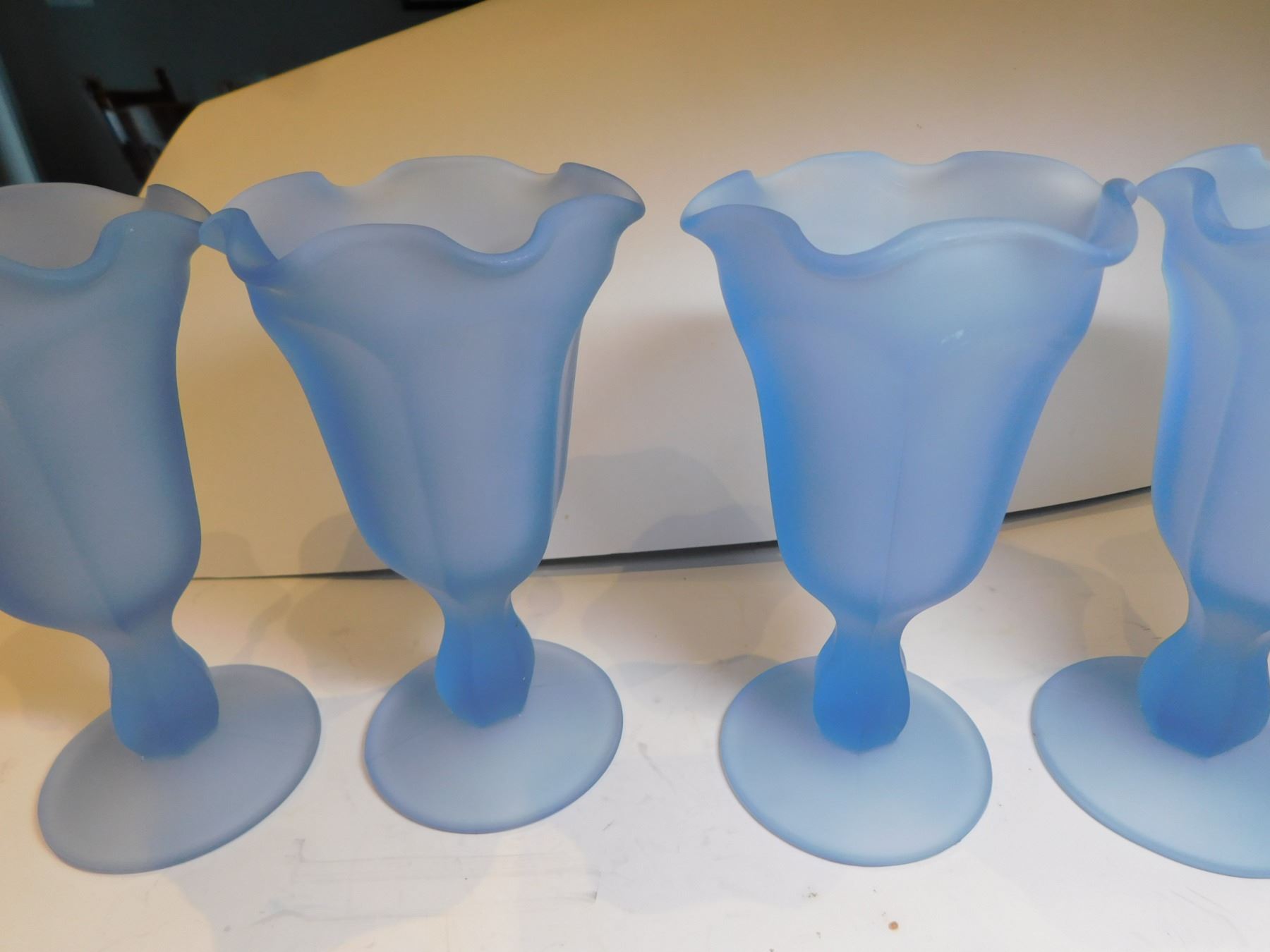4 VINTAGE BLUE FROSTED PARFAIT CUPS