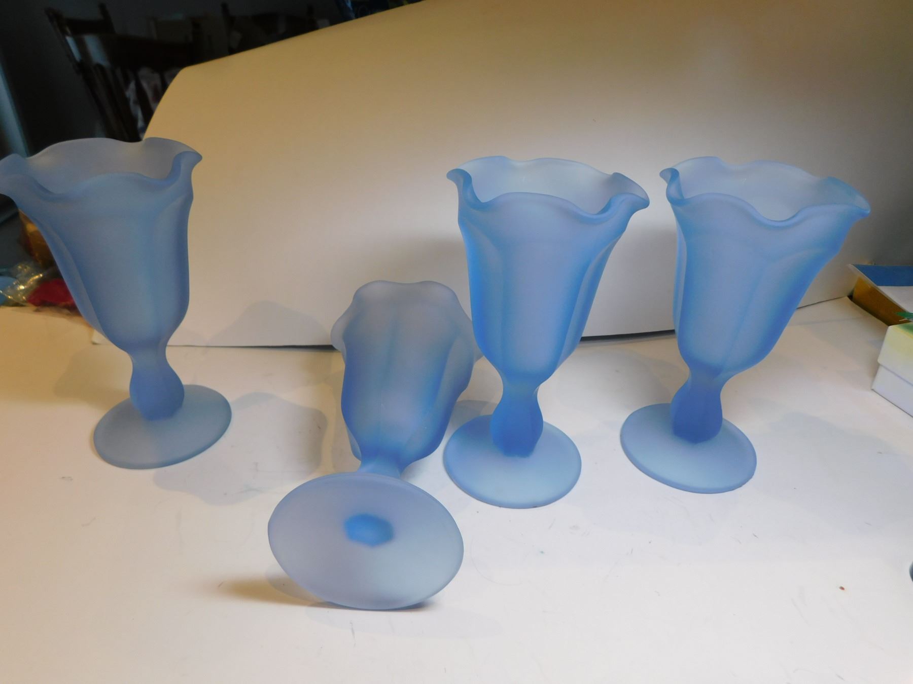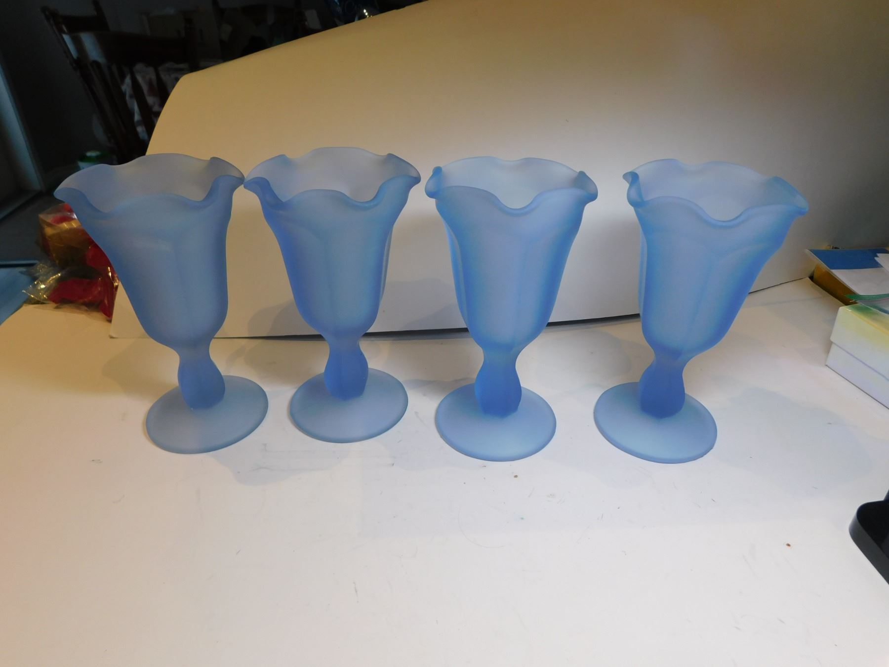 4 VINTAGE BLUE FROSTED PARFAIT CUPS
