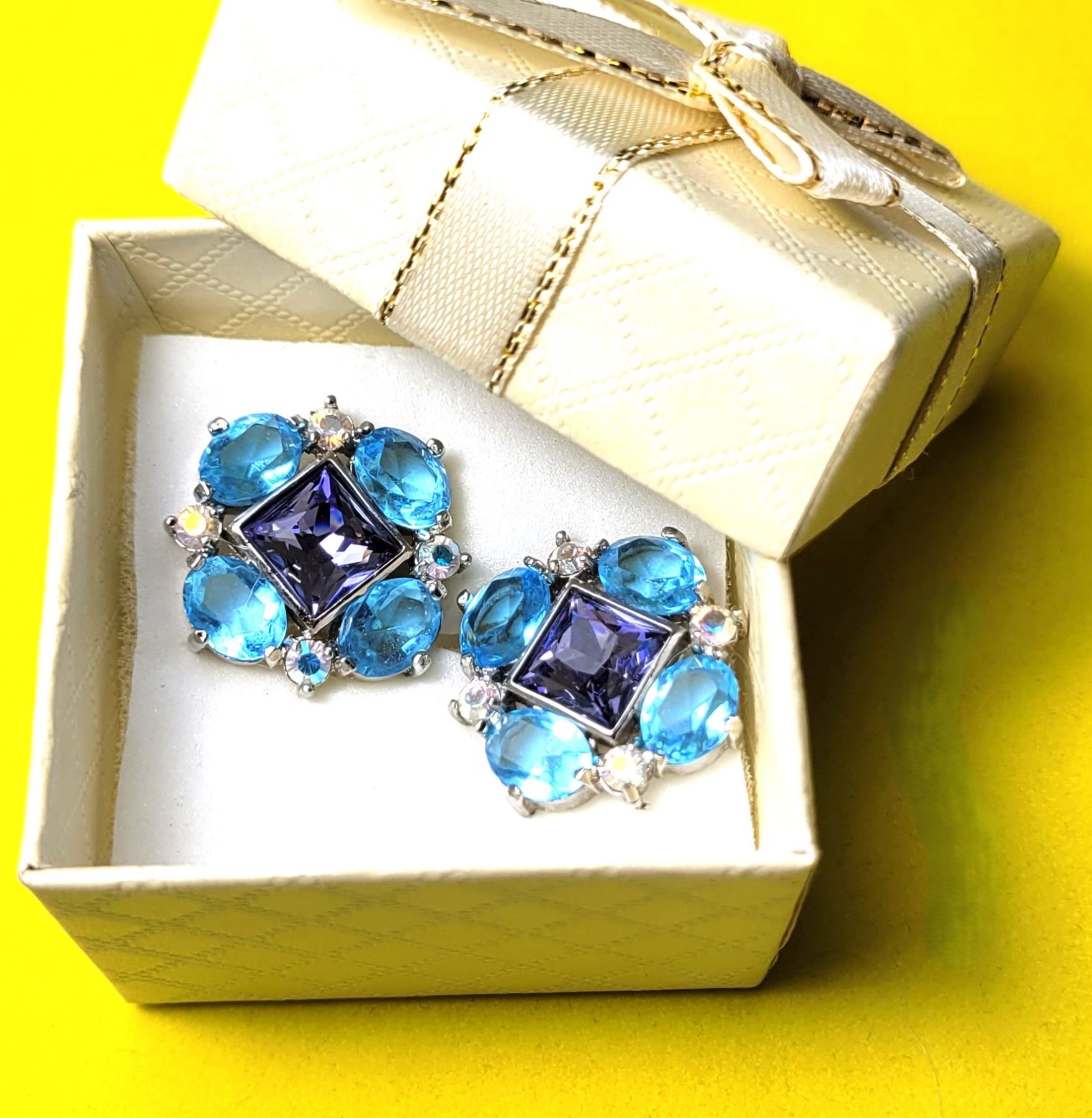 BLUE, AMETHYST PURPLE AND IRRIDESCENT CZ CRYSTALS.  JEWELERY