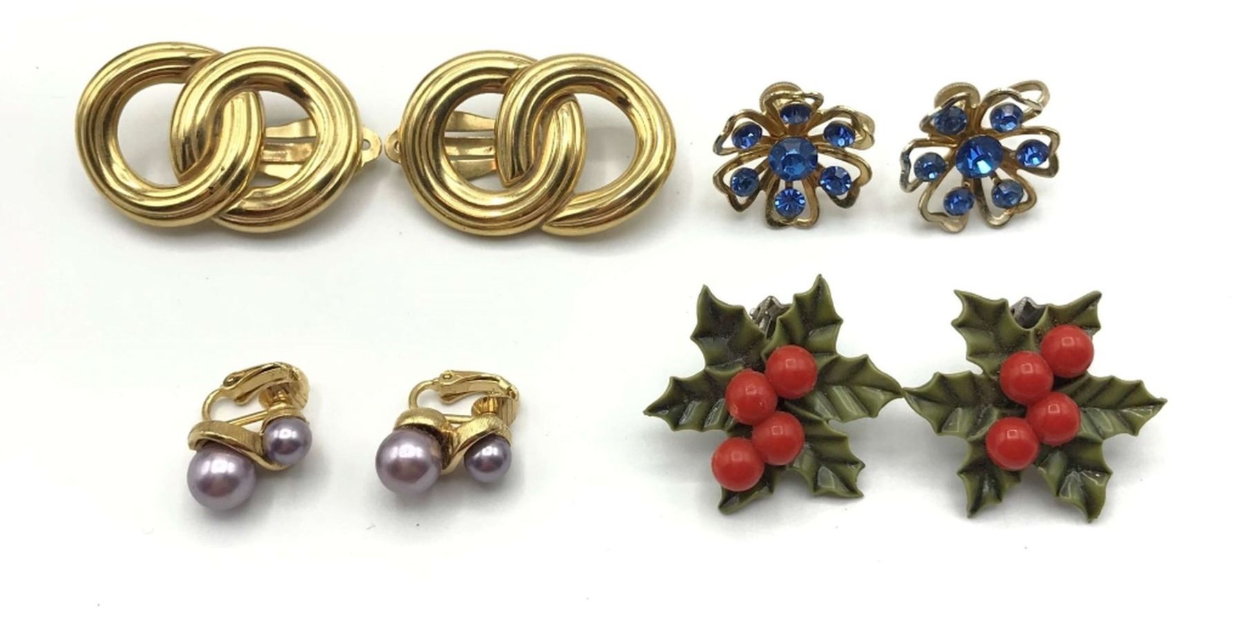 WITH BLUE RHINESTONES (1)POINSETTA (1)LAVENDAR FAUX PEARLS (1)GIVENCHY