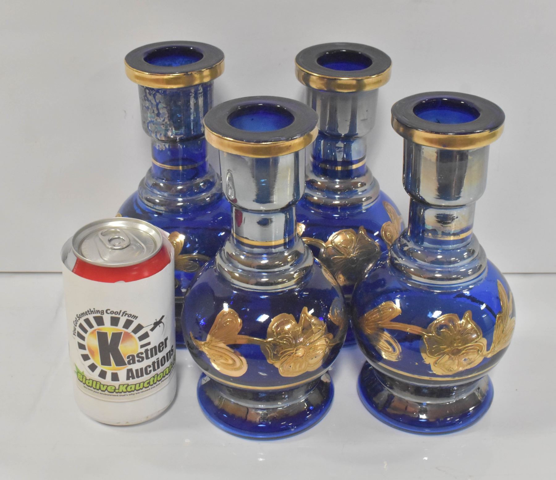 4 VINTAGE COBALT BLUE GOLD EMBOSSED HOOKAH BASES
