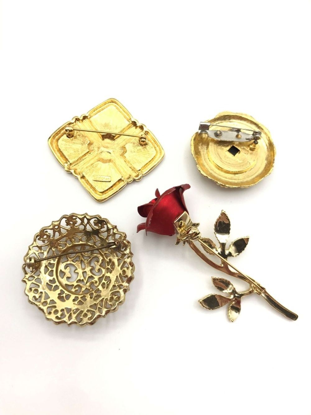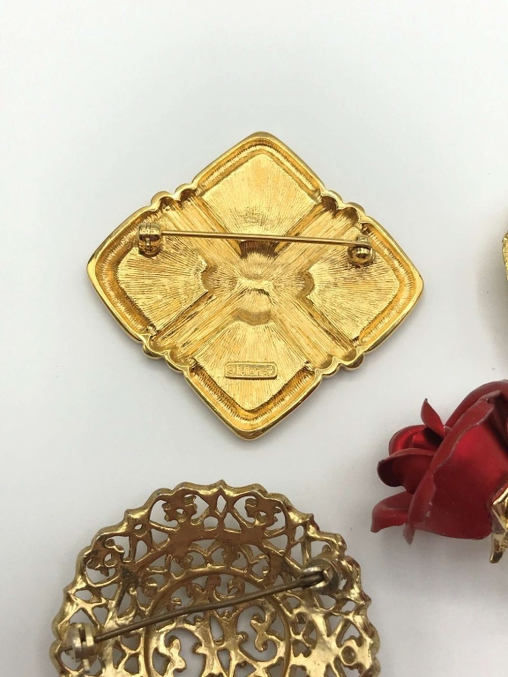 SQUARE WITH HUNTER GREEN ENAMEL (1)CIRCULAR WITH BLACK RHINESTONE CENTER (1)CIRCULAR FILIGREE DESIGN (1)ROSE