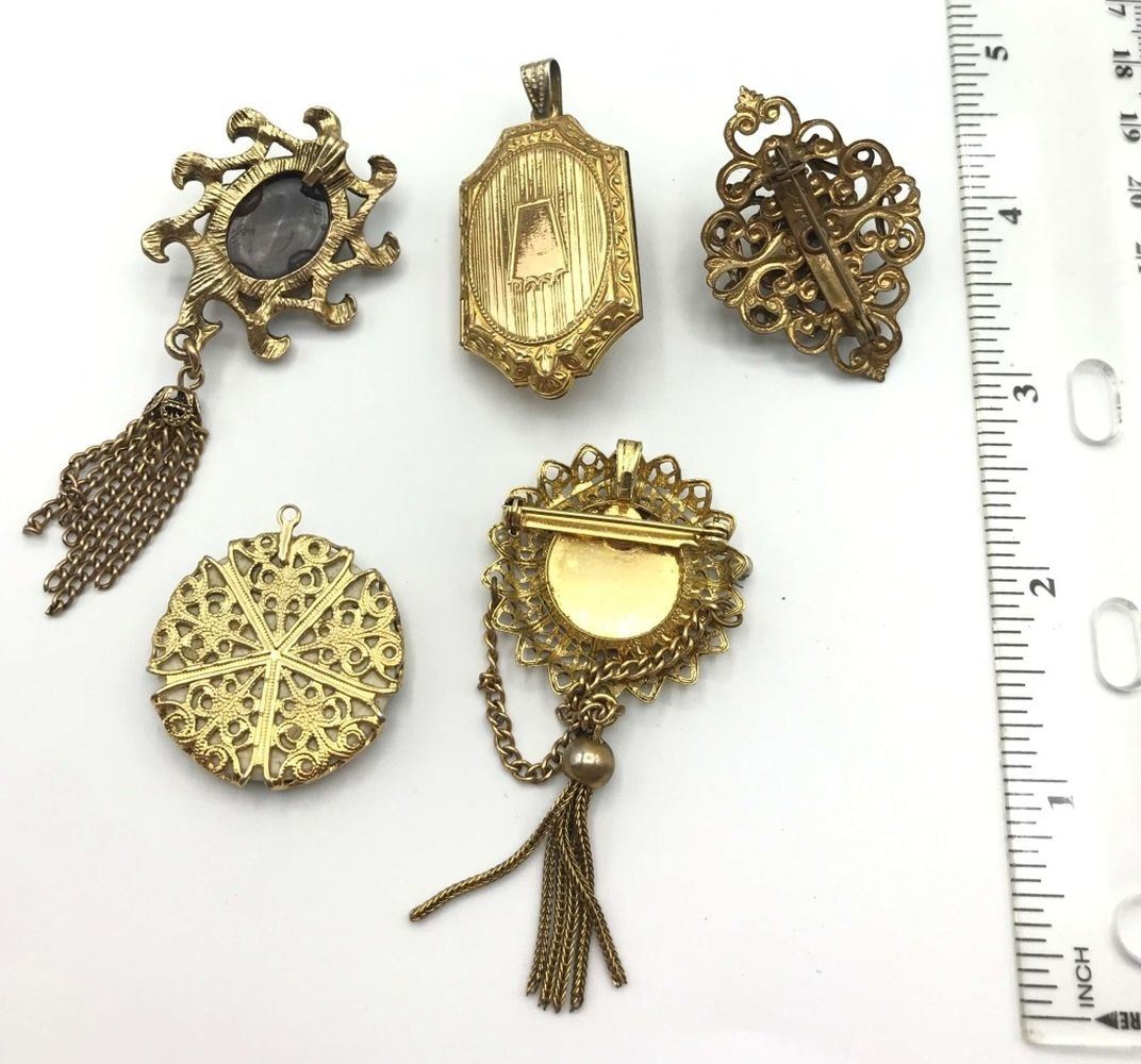 CAMEO-ABILONE-INLAY-TIGER EYE-FAUX PEARLS-CAMEO BROOCH MARKED CORO-FILIGREE DESIGNS-CAMEO PENDANT LOCKET