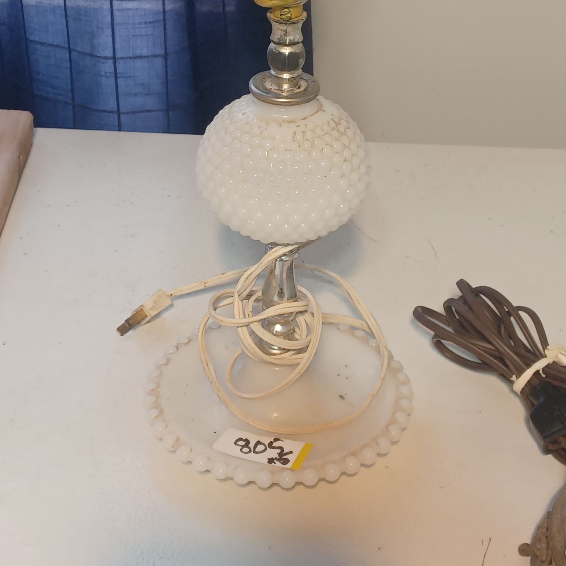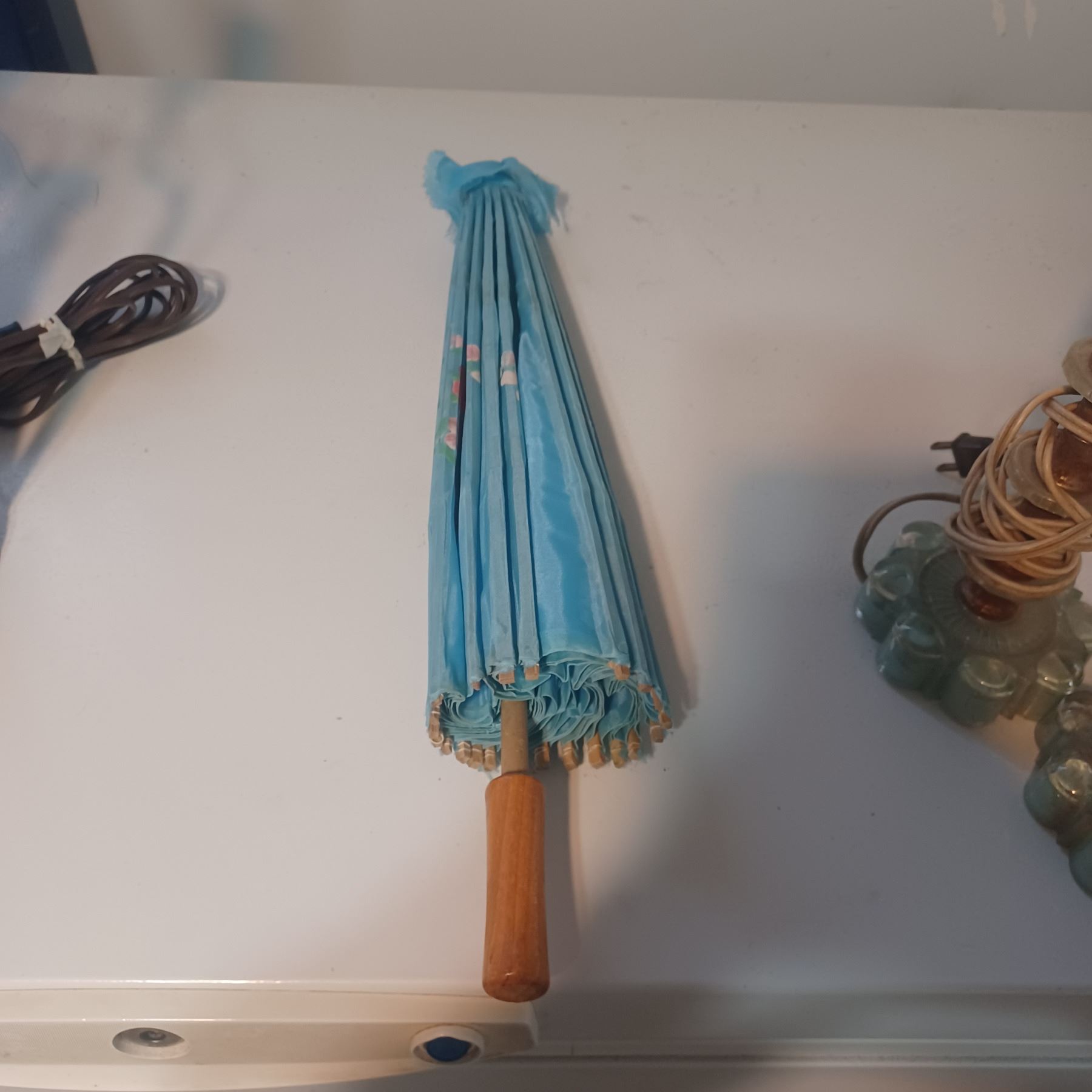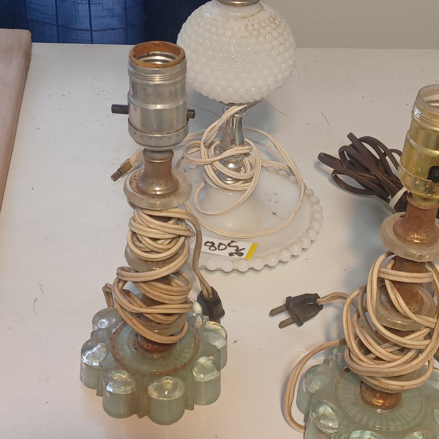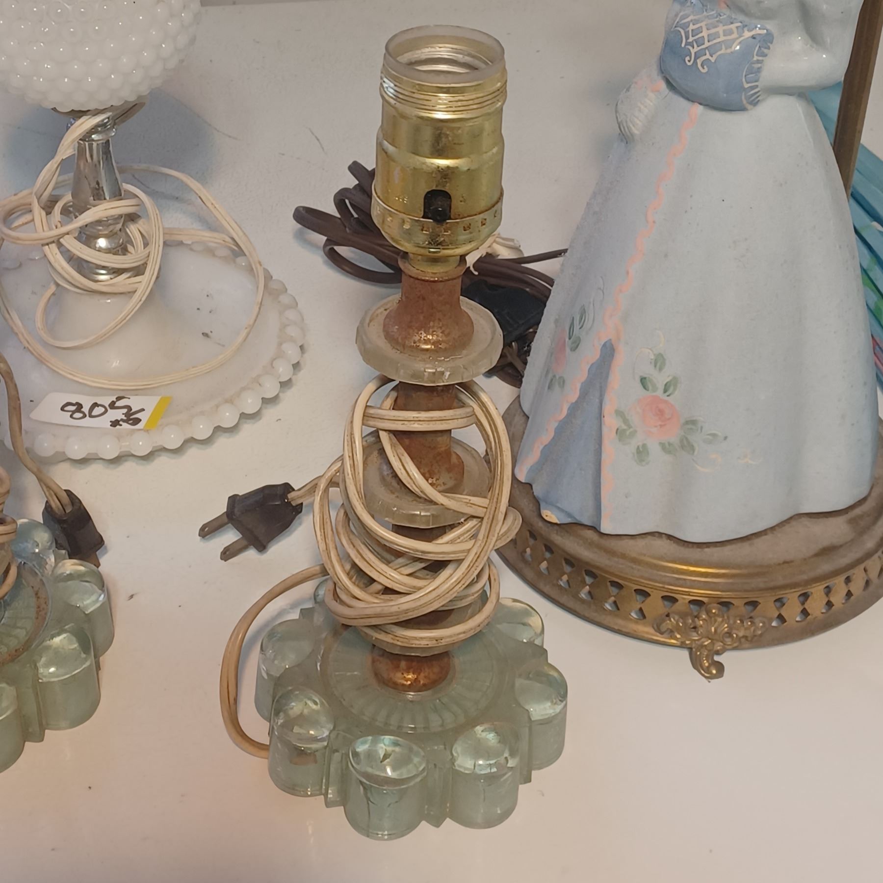 4 VINTAGE LAMPS AND PAPER UMBRELLA