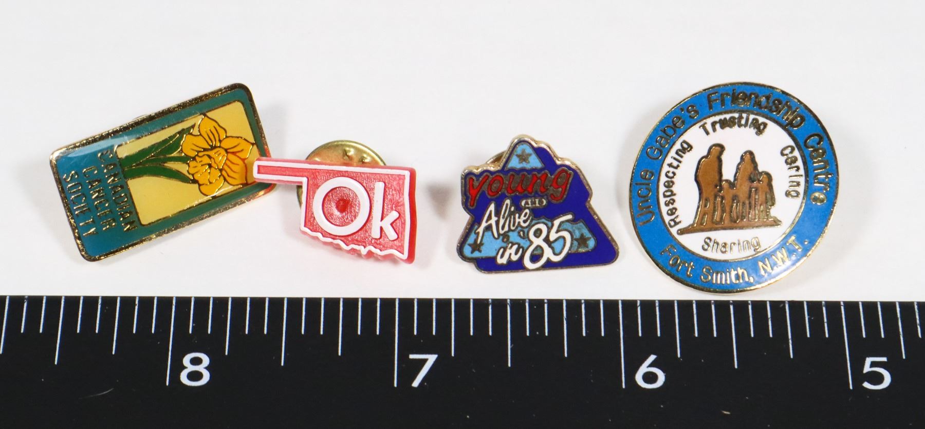 4 VINTAGE LAPEL PINS Ok, UNCLE GABE'S FRIENDSHIP