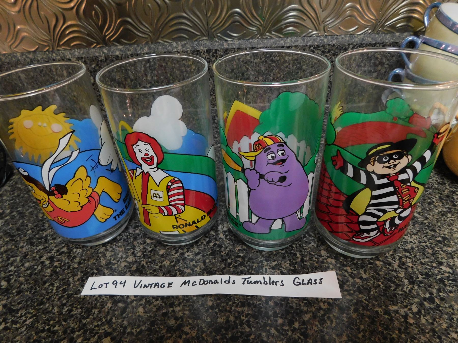 4 VINTAGE MCDONALD LAND GLASS TUMBLERS
