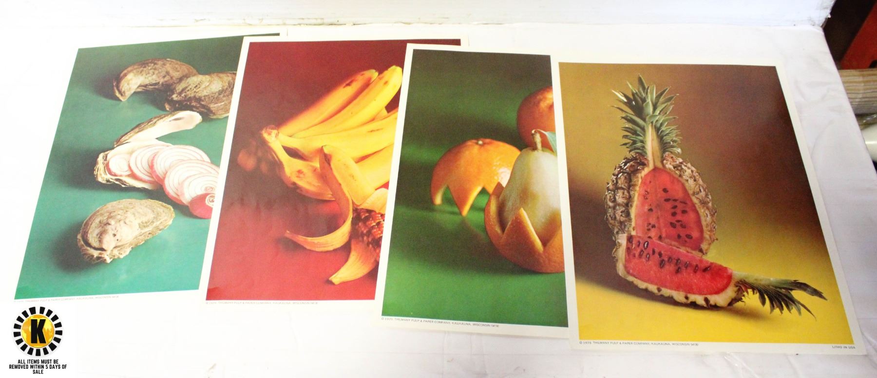THILMANY PULP & PAPER COMPANY. PINEAPPLE/WATERMELON, ORANGE/PEAR, BANANA/ORNAMENTAL CORN, OYSTER/ONION, SUITABLE FOR FRAMING!