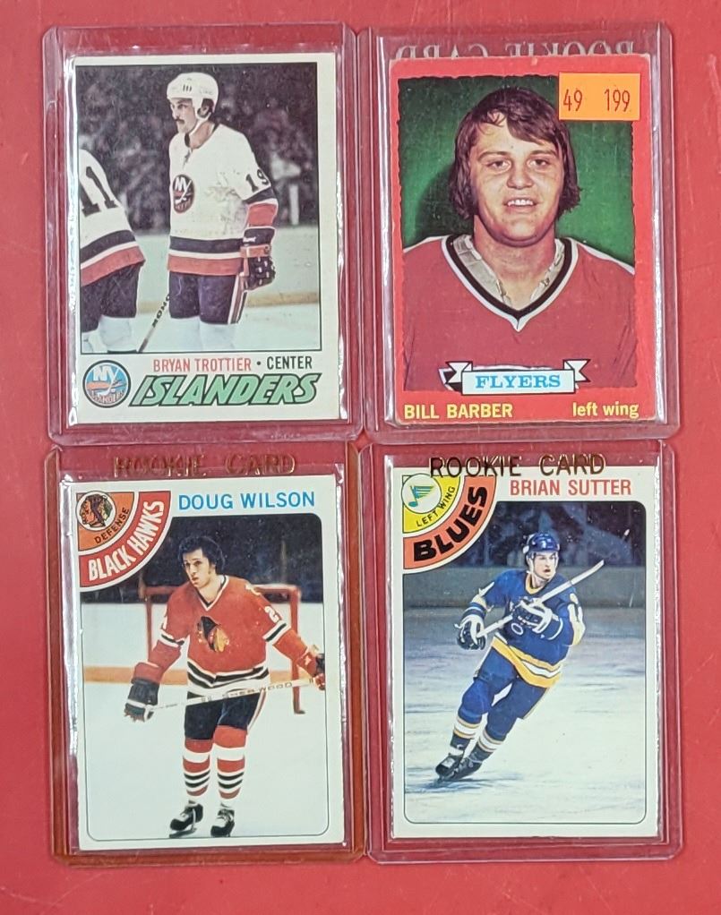 4 VTG Hockey Cards w/ Barber, Trottier, Sutter, & Wilson