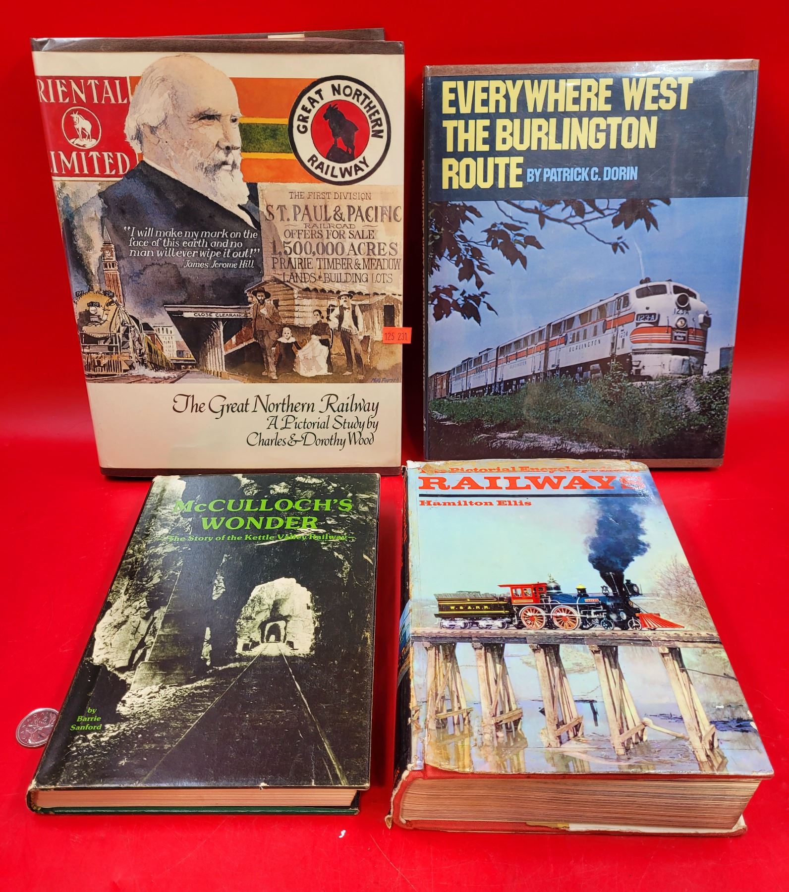 4 VTG Railway Books w/ Story of Kettle Valley Railway, Great Northern Railway, & More