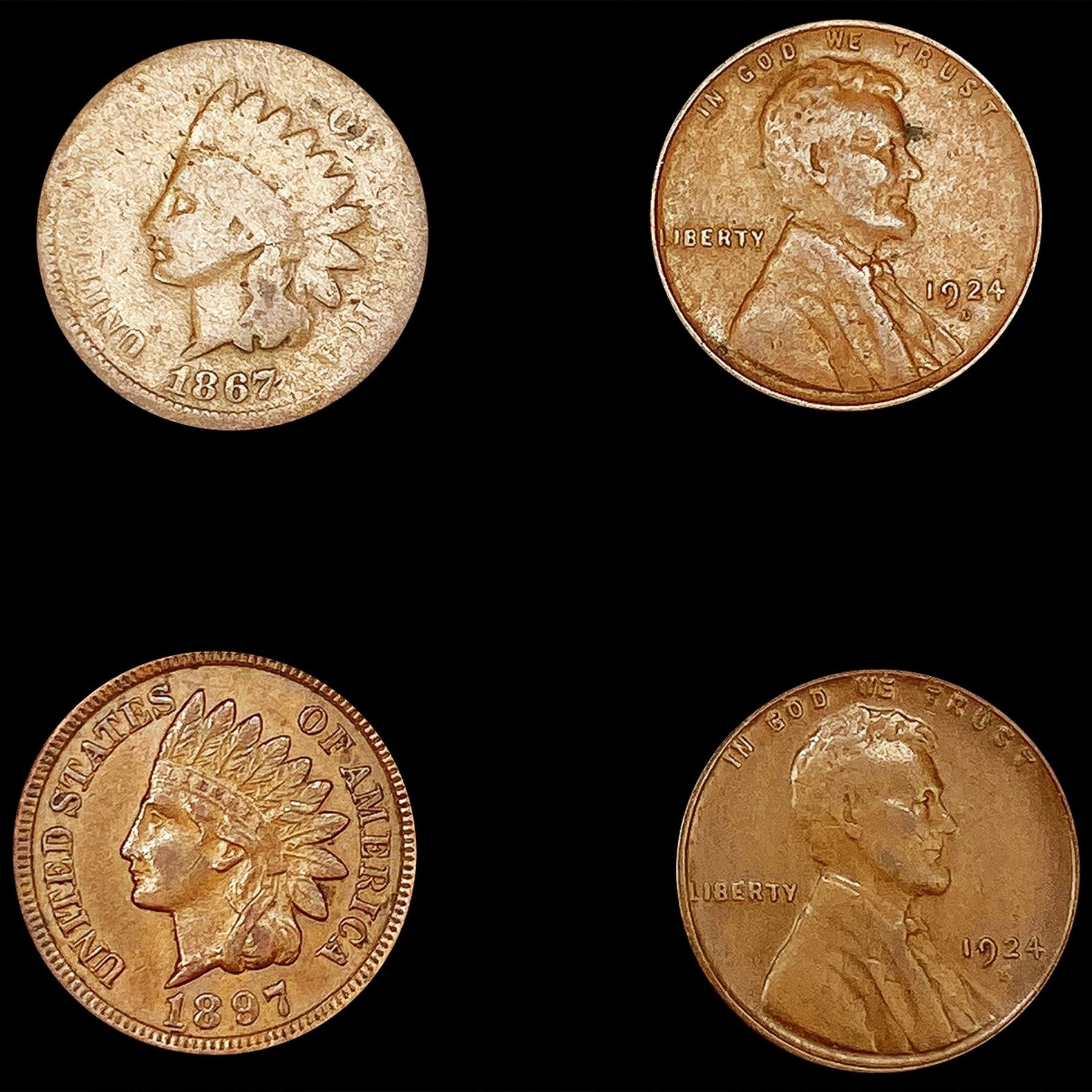 [4] Varied US Cents (1867, 1897, (2) 1924-D) NICELY CIRCULATED