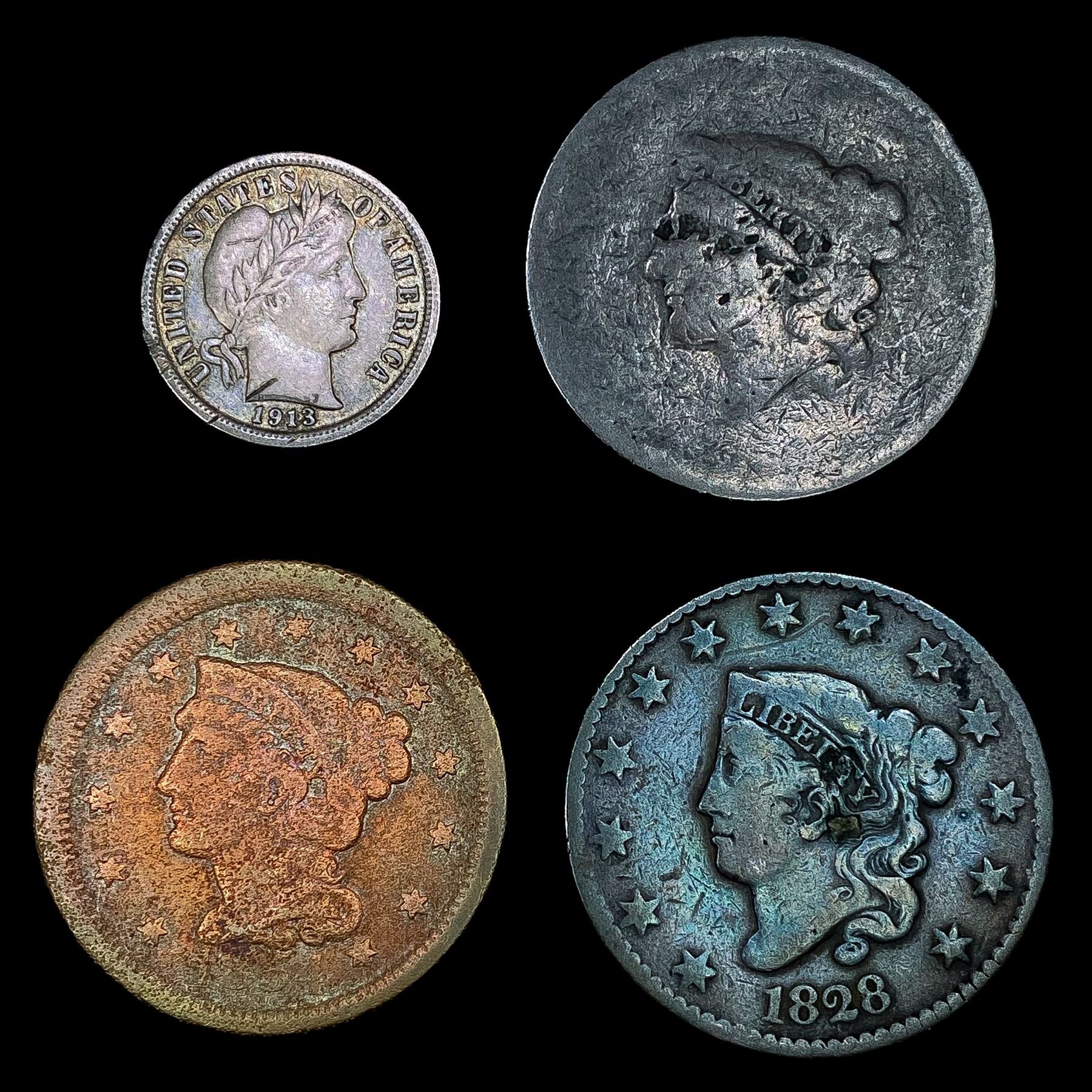 (4) Varied US Coinage (1828, 1854, 1913) HIGH GRAD