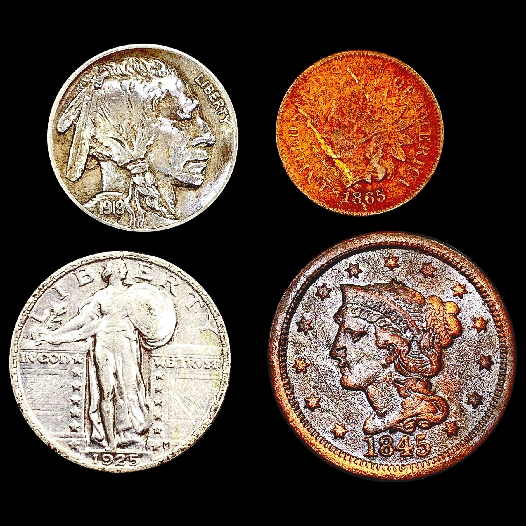 [4] Varied US Coinage [1845, 1865, 1919, 1925] HIG