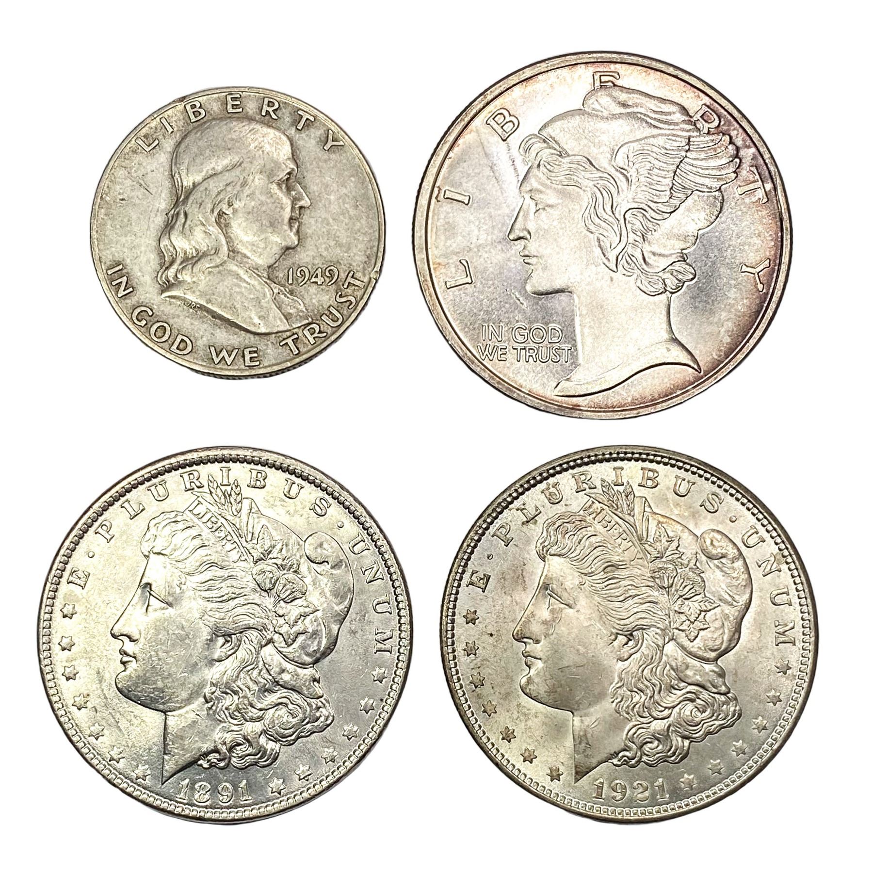 [4] Varied US Coinage [1891, 1921,1949-D]