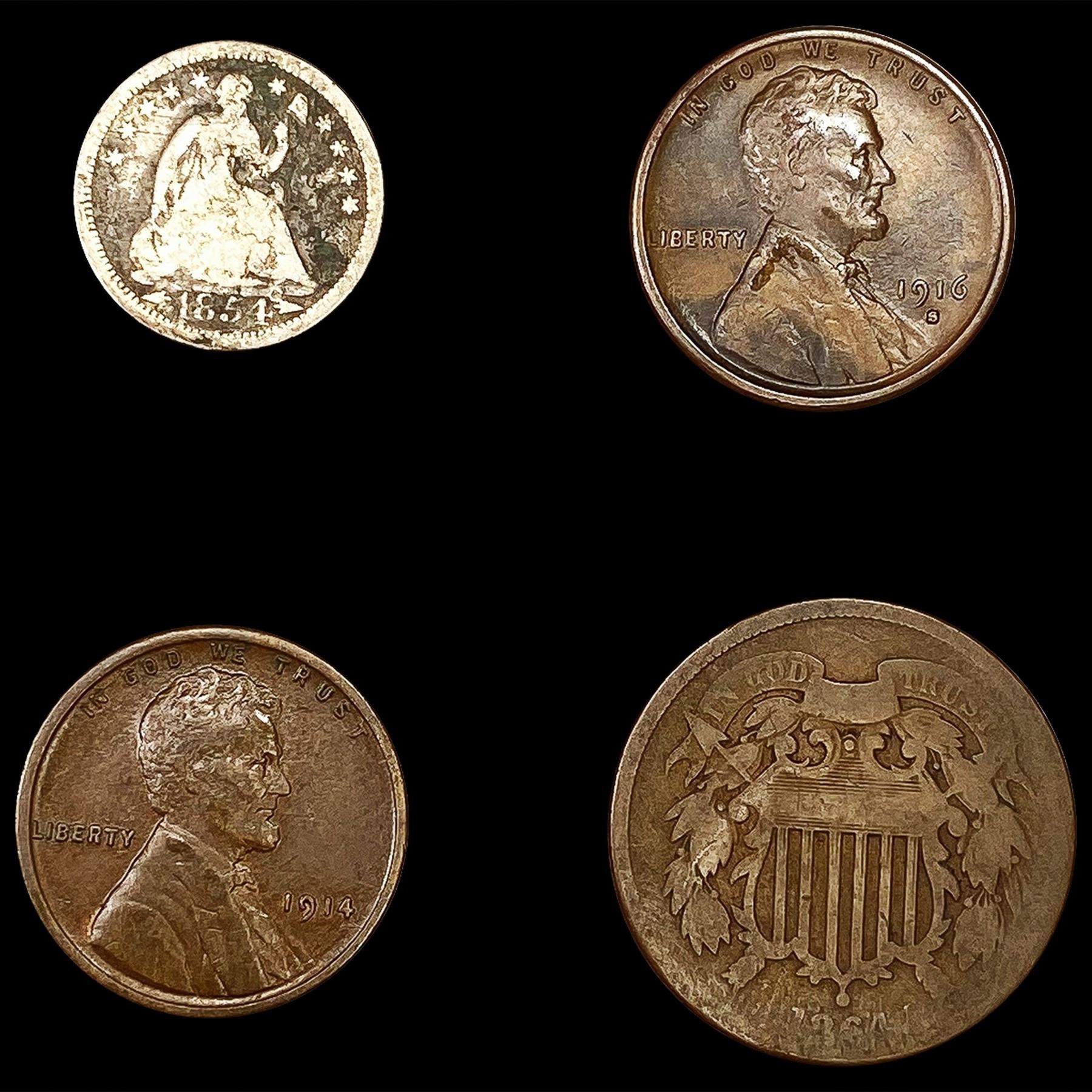 [4] Varied US Coinage (1916-S, 1864, 1854, 1914) LIGHTLY CIRCULATED