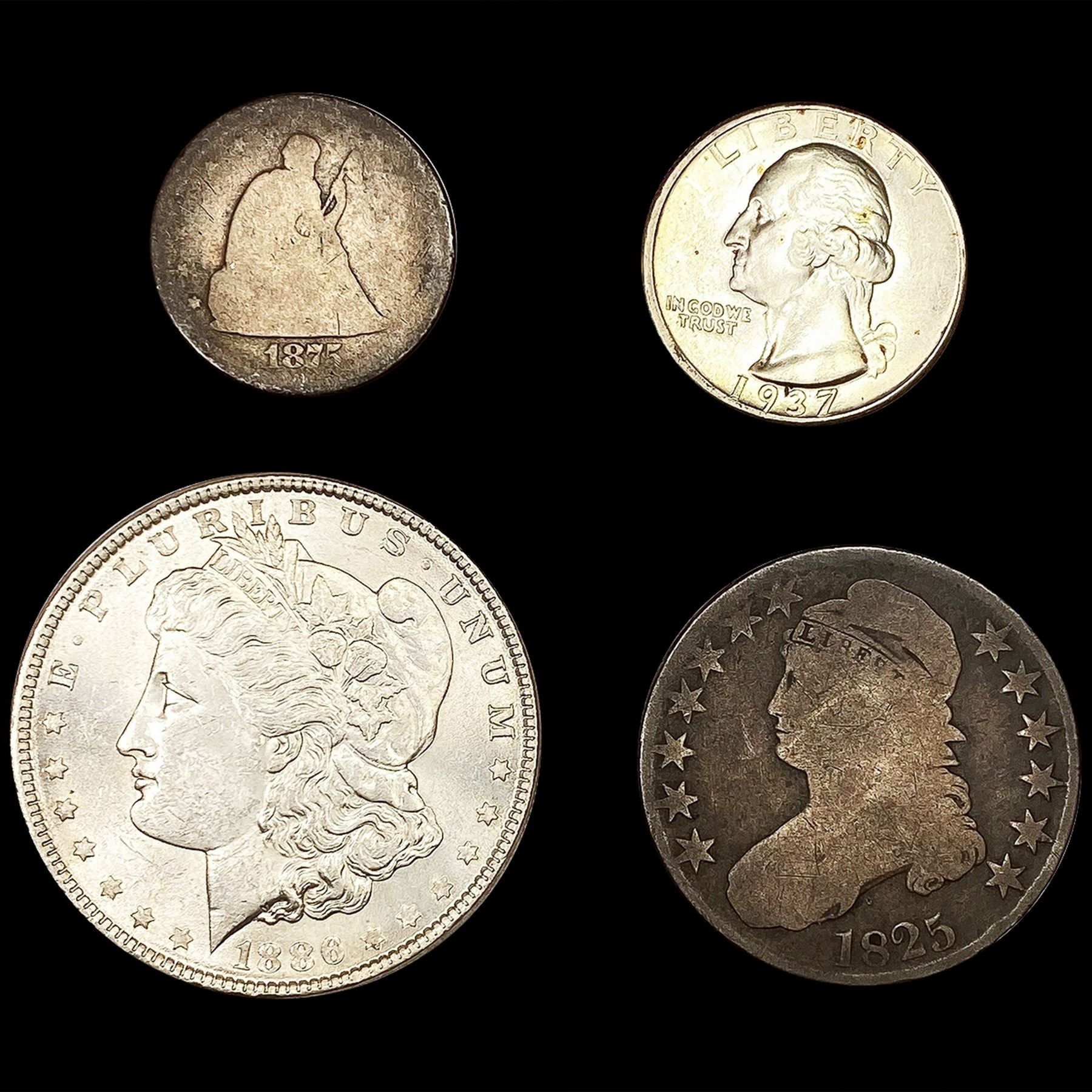 [4] Varied US Coins (1825, 1875, 1886, 1937) UNCIR
