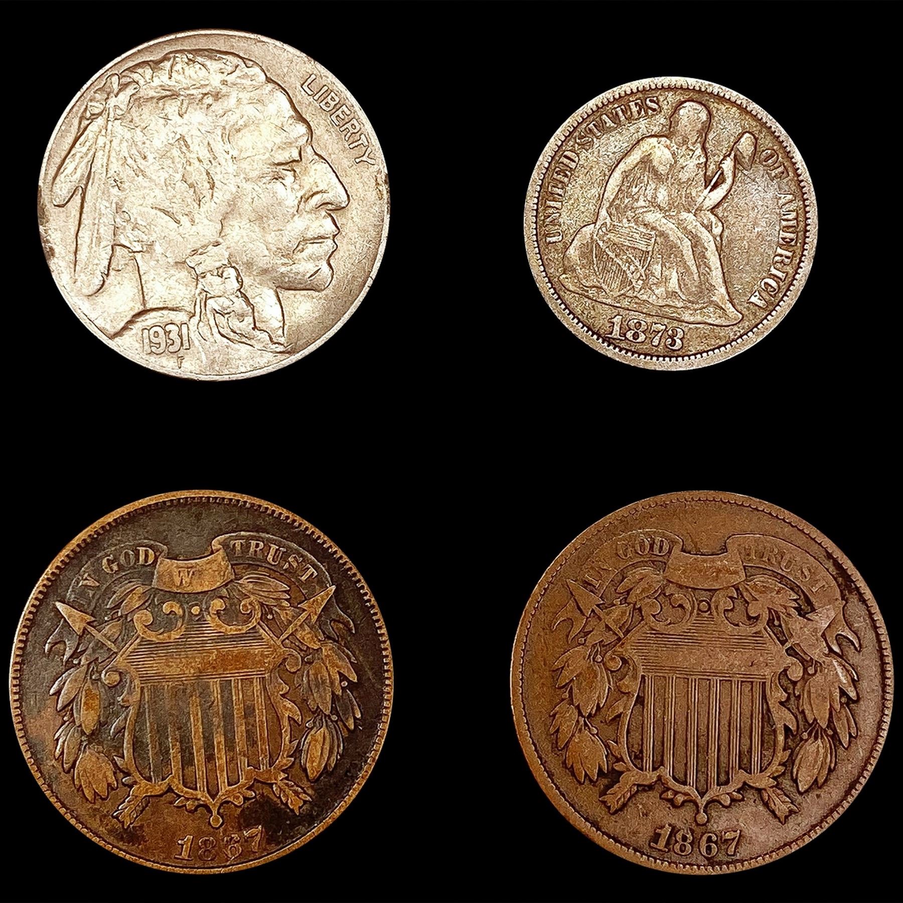 (4) Varied US Coins ((2) 1867, 1873, 1931-S) LIGHT