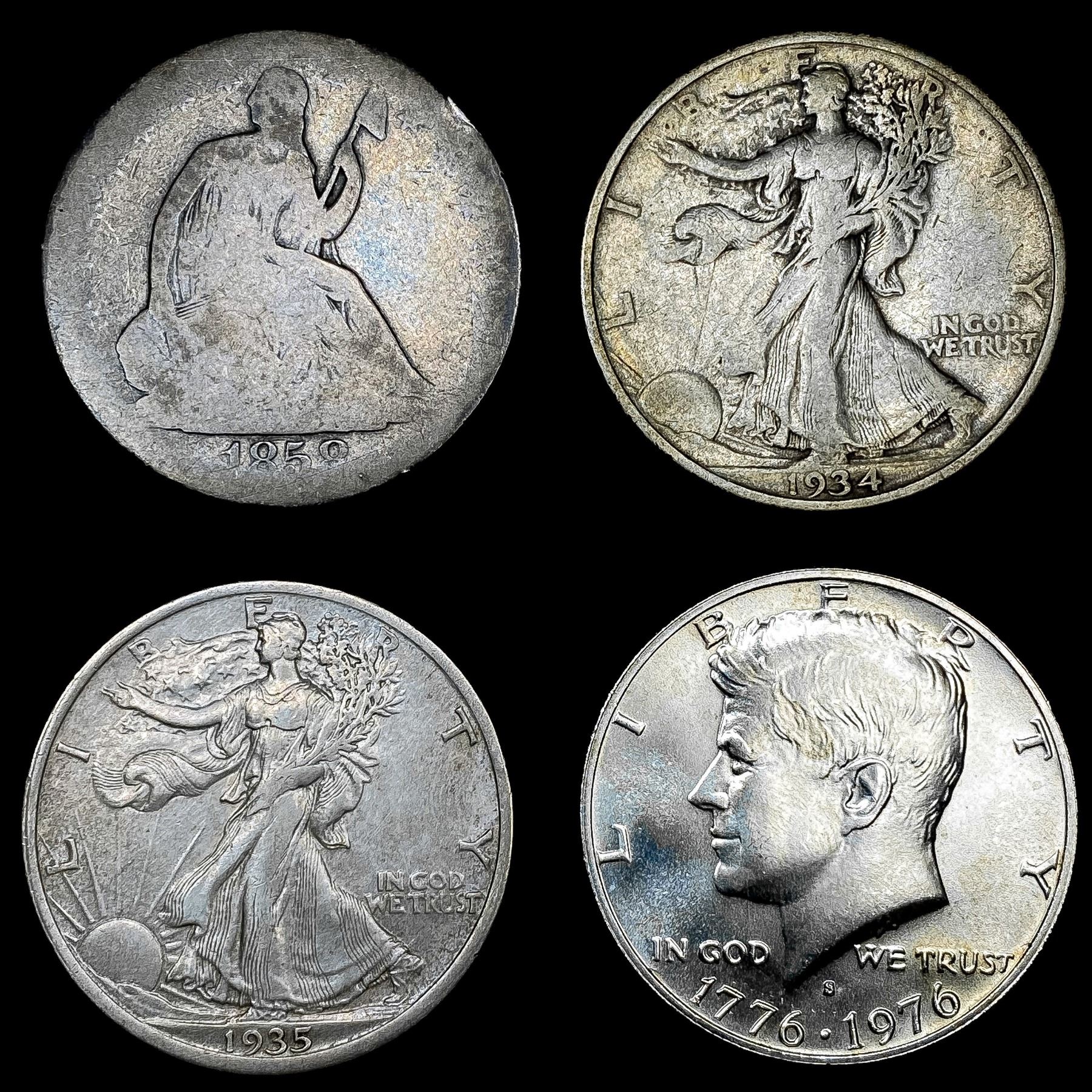 [4] Varied US Half Dollars (1858, 1934, 1935, 1976-S) CLOSELY UNCIRCULATED