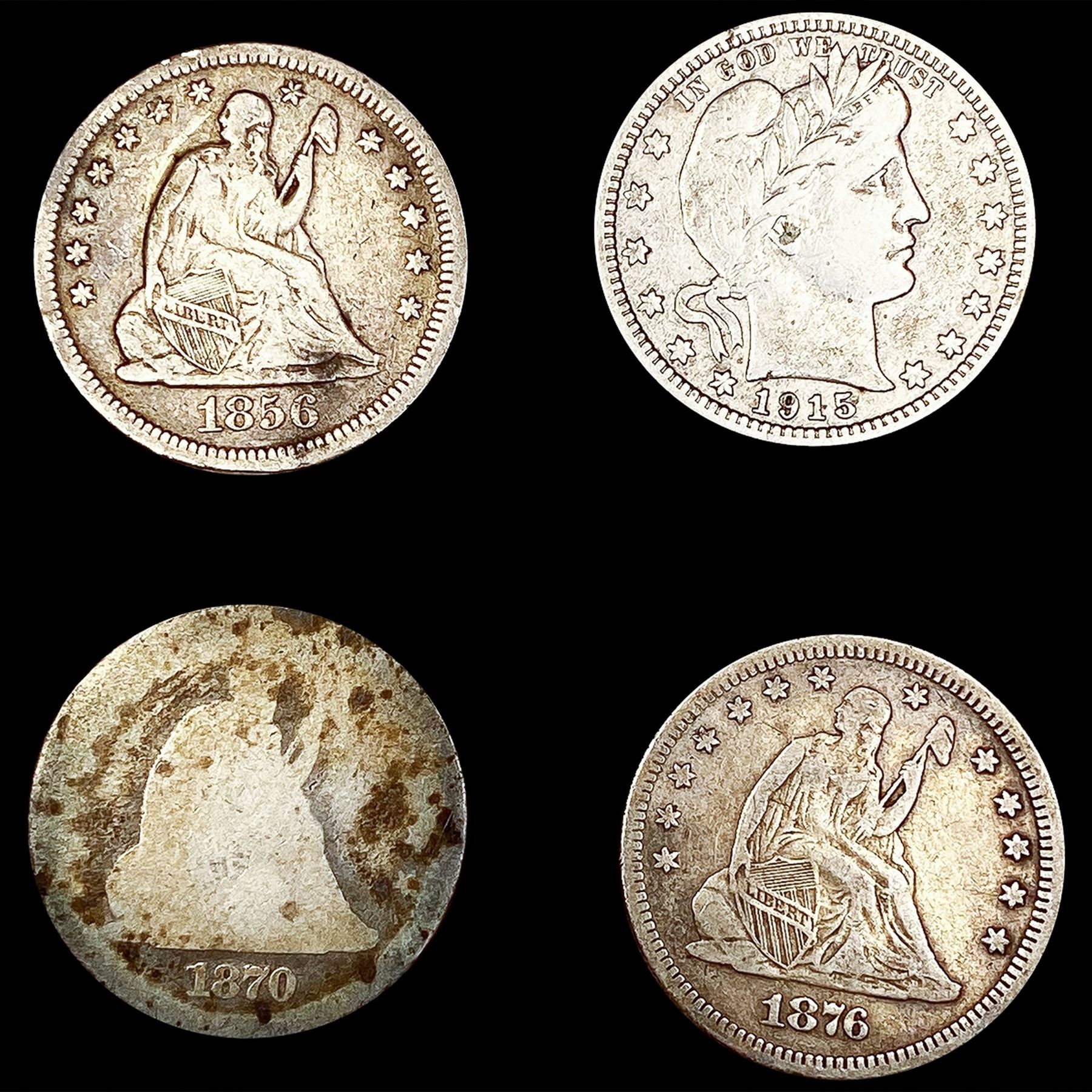 [4] Varied US Quarters (1856, 1870, 1876, 1915) NI