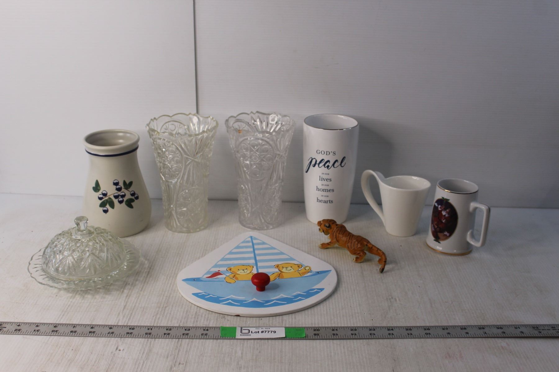 (4) Vases, Candy Dish, (2) Mugs, Misc.