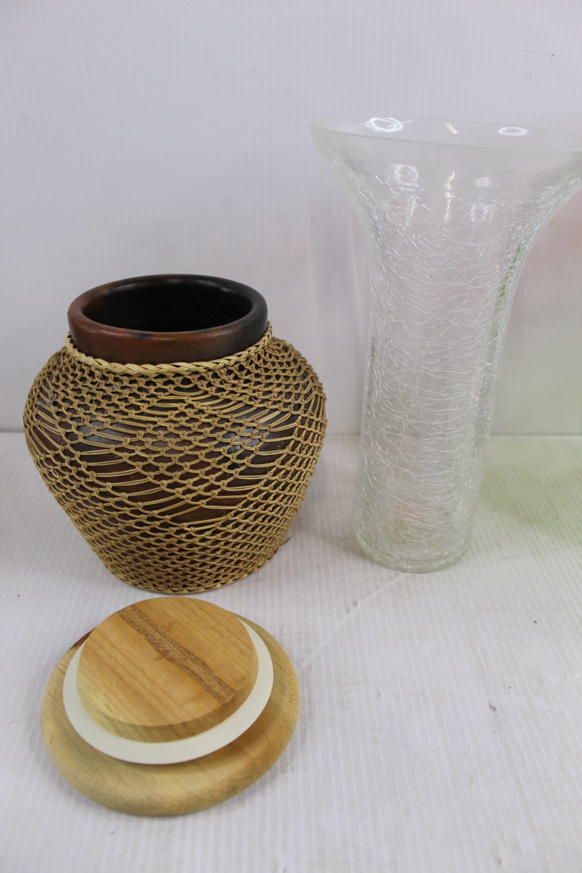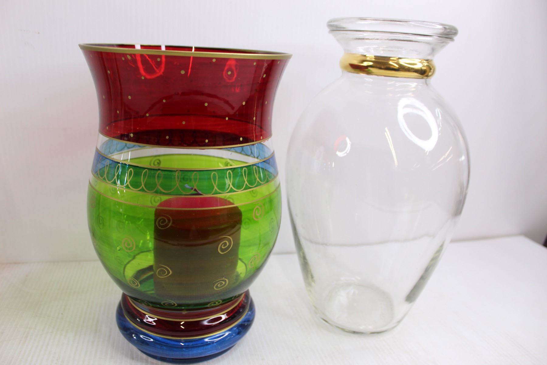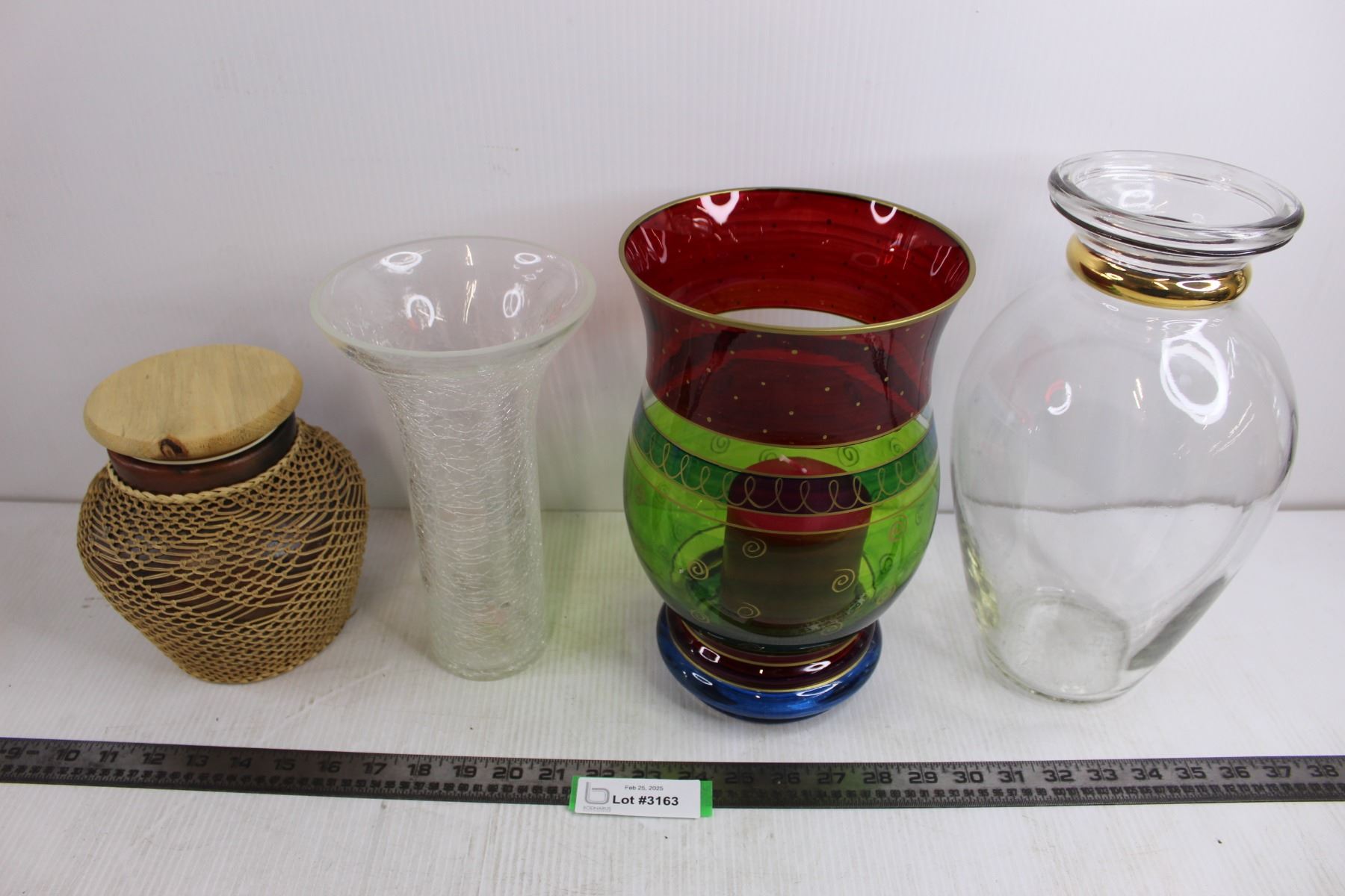 (4) Vases and Candle (3 Glass & 1 Hudson's Bay Ceramic)