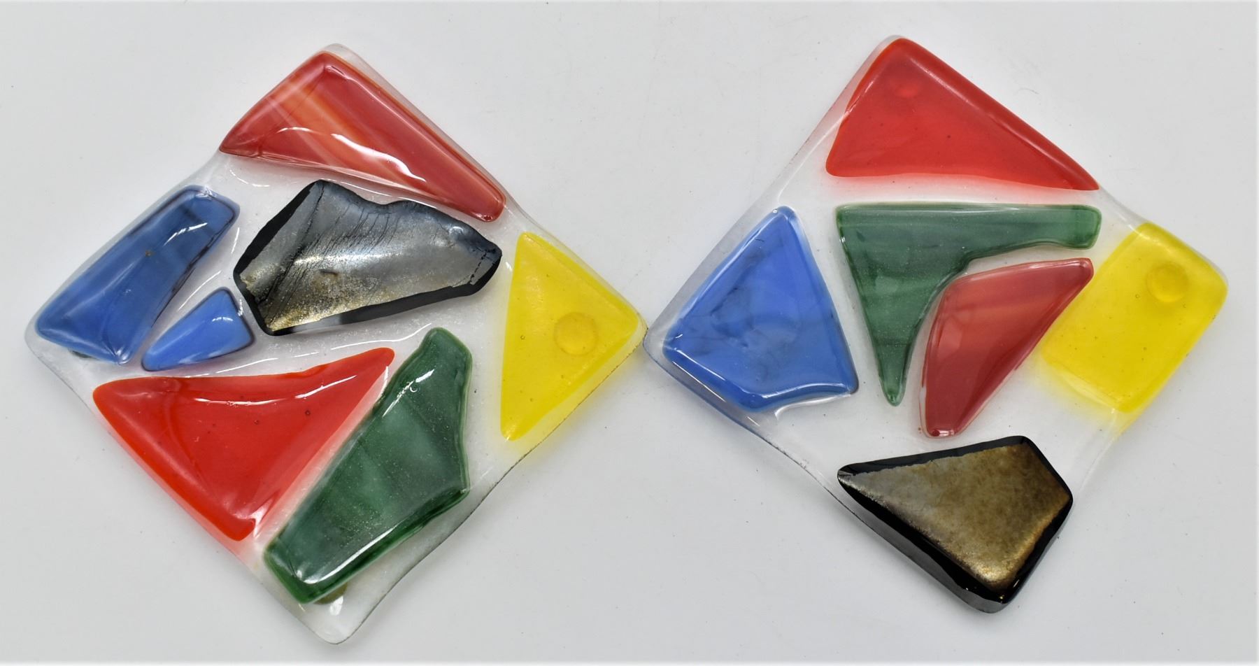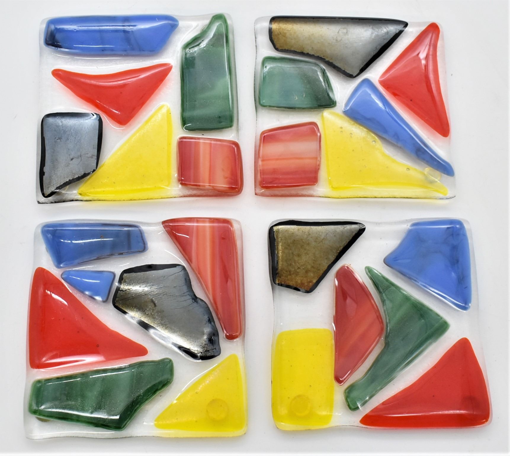 4 Vetro di Murano Glass Tile Coasters, measure 4'' square, beautiful vibrant colors