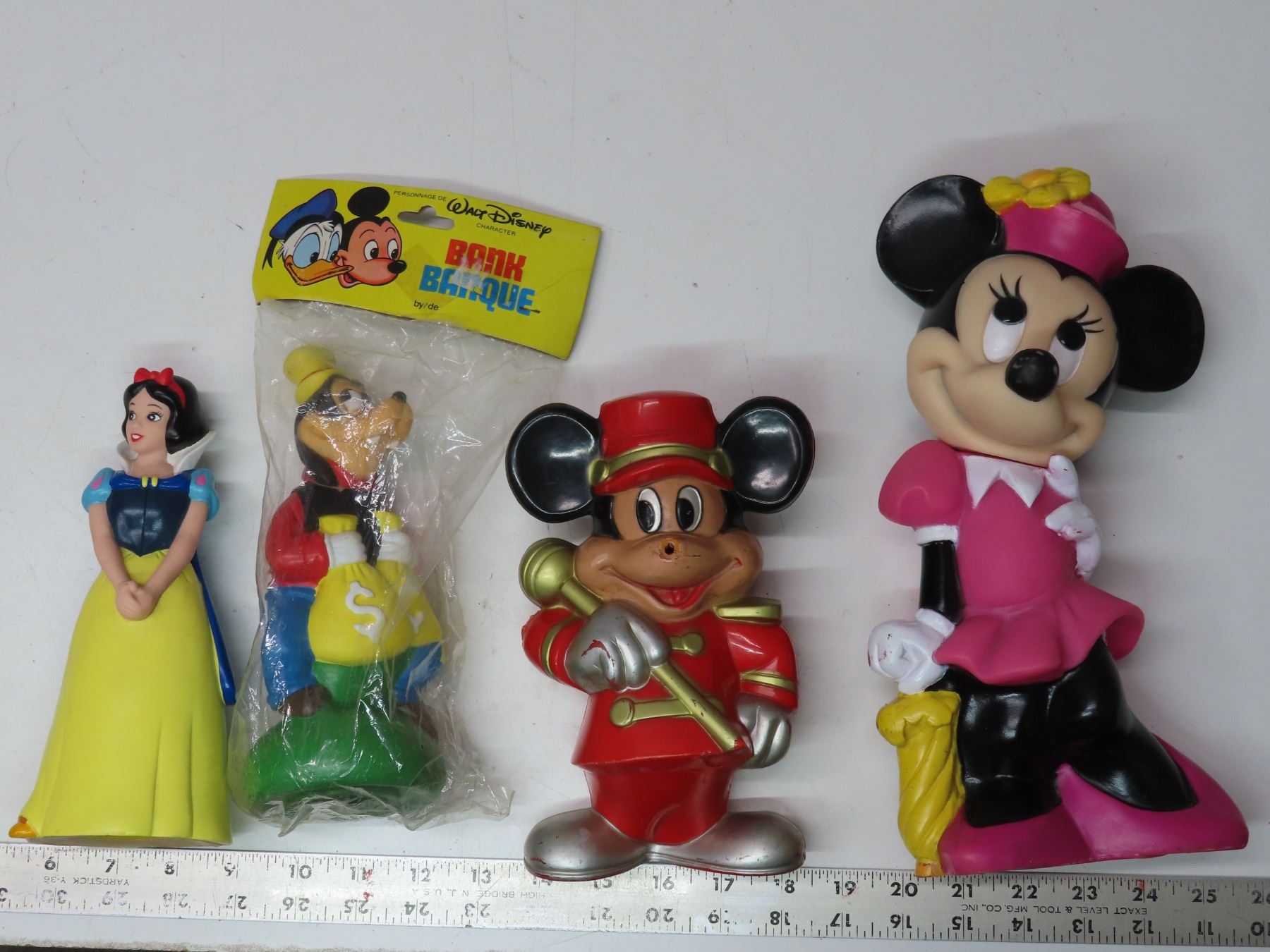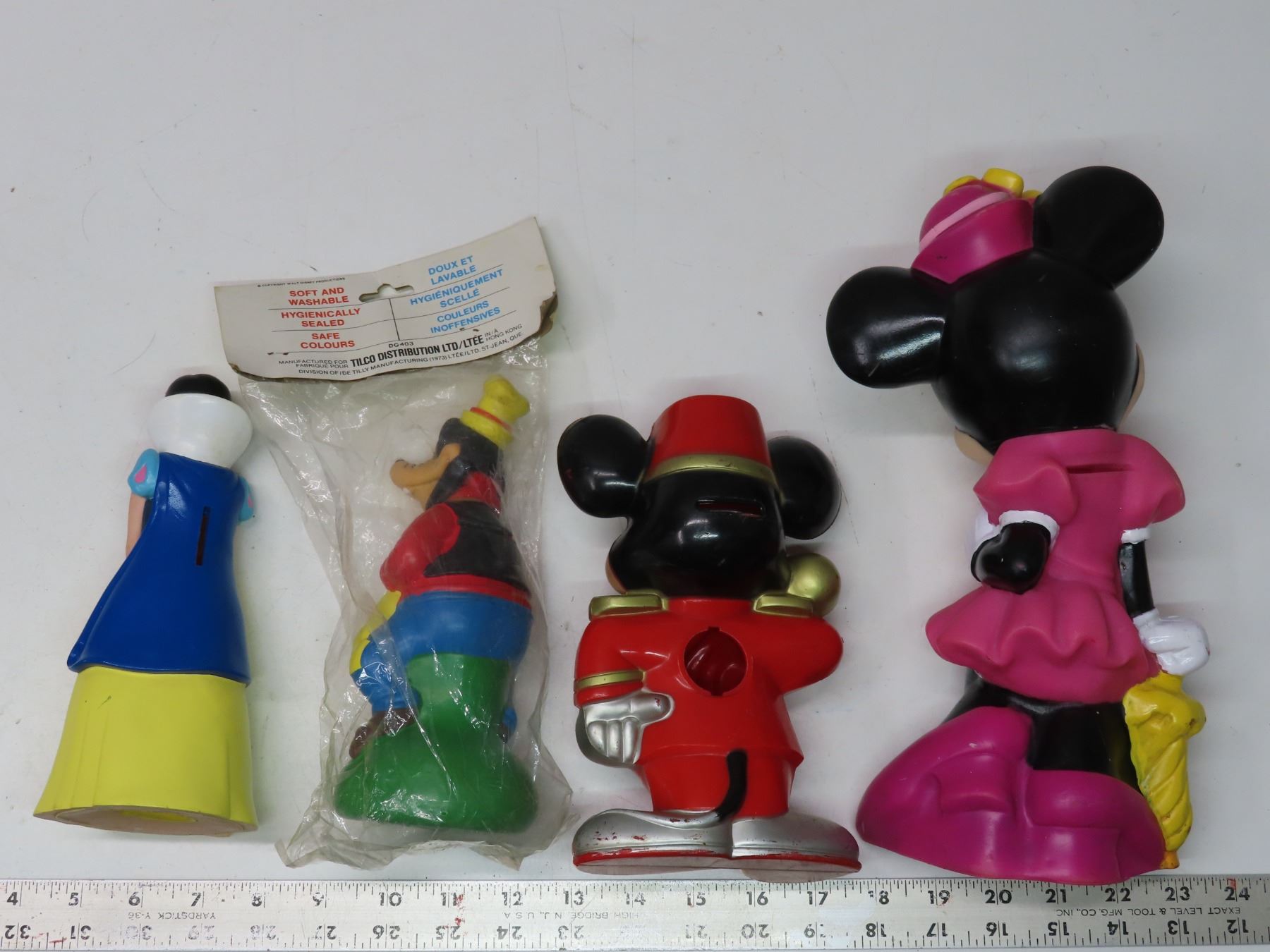 4 Vintage Disney Coin Banks – Goofy Still in Unopened Original Packaging, Minnie Mouse 11.5 Inches tall – missing stopper