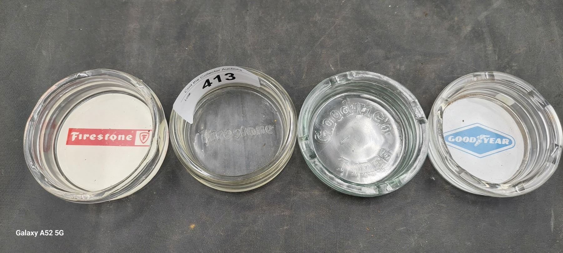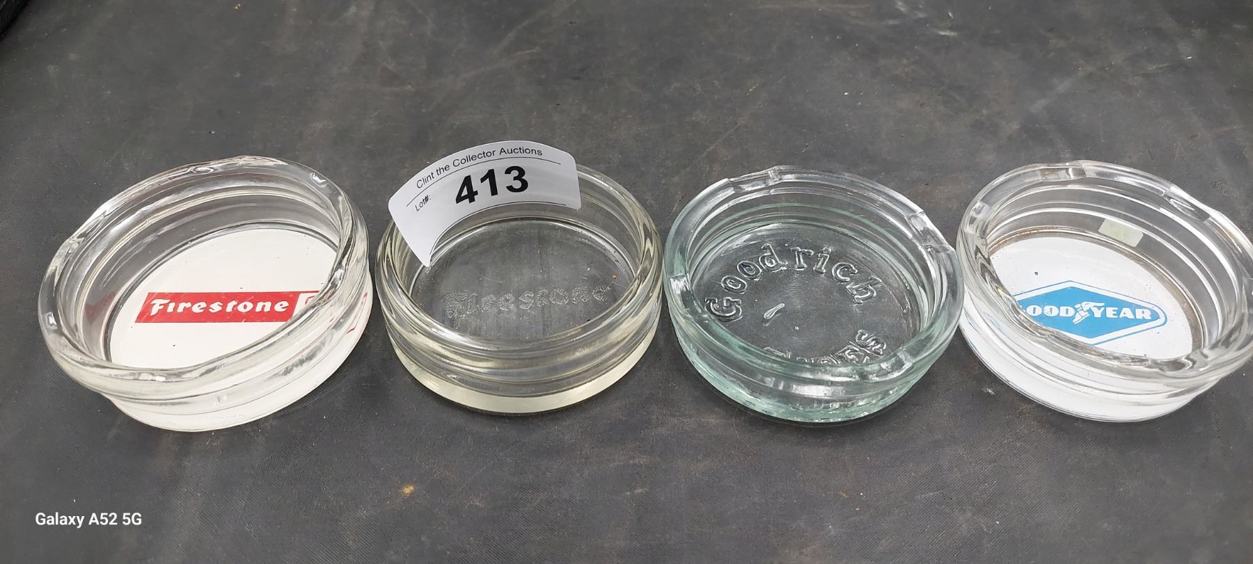 4 Vintage Firestone Goodyear and Goodrich tire blast ashtray inserts
