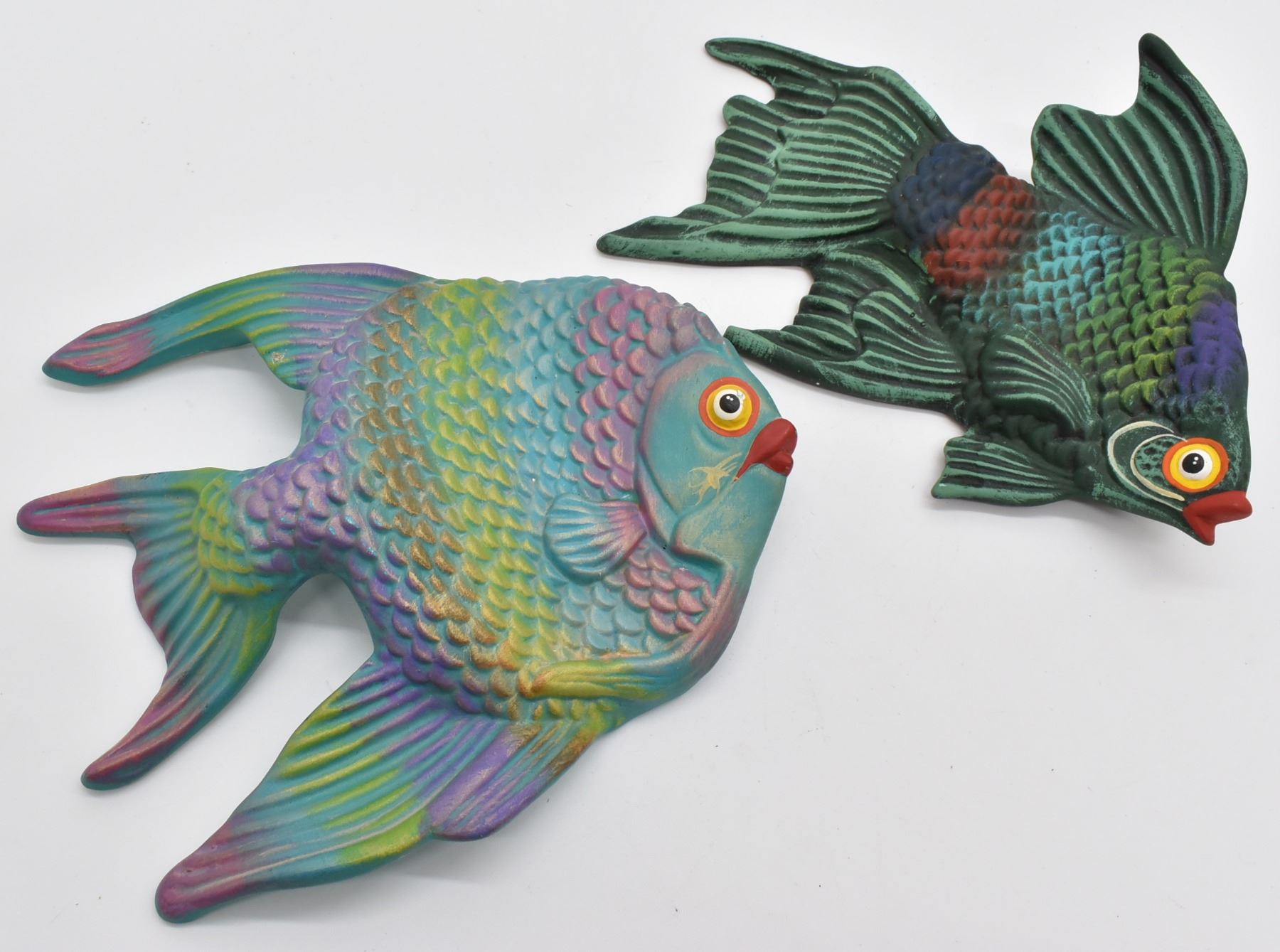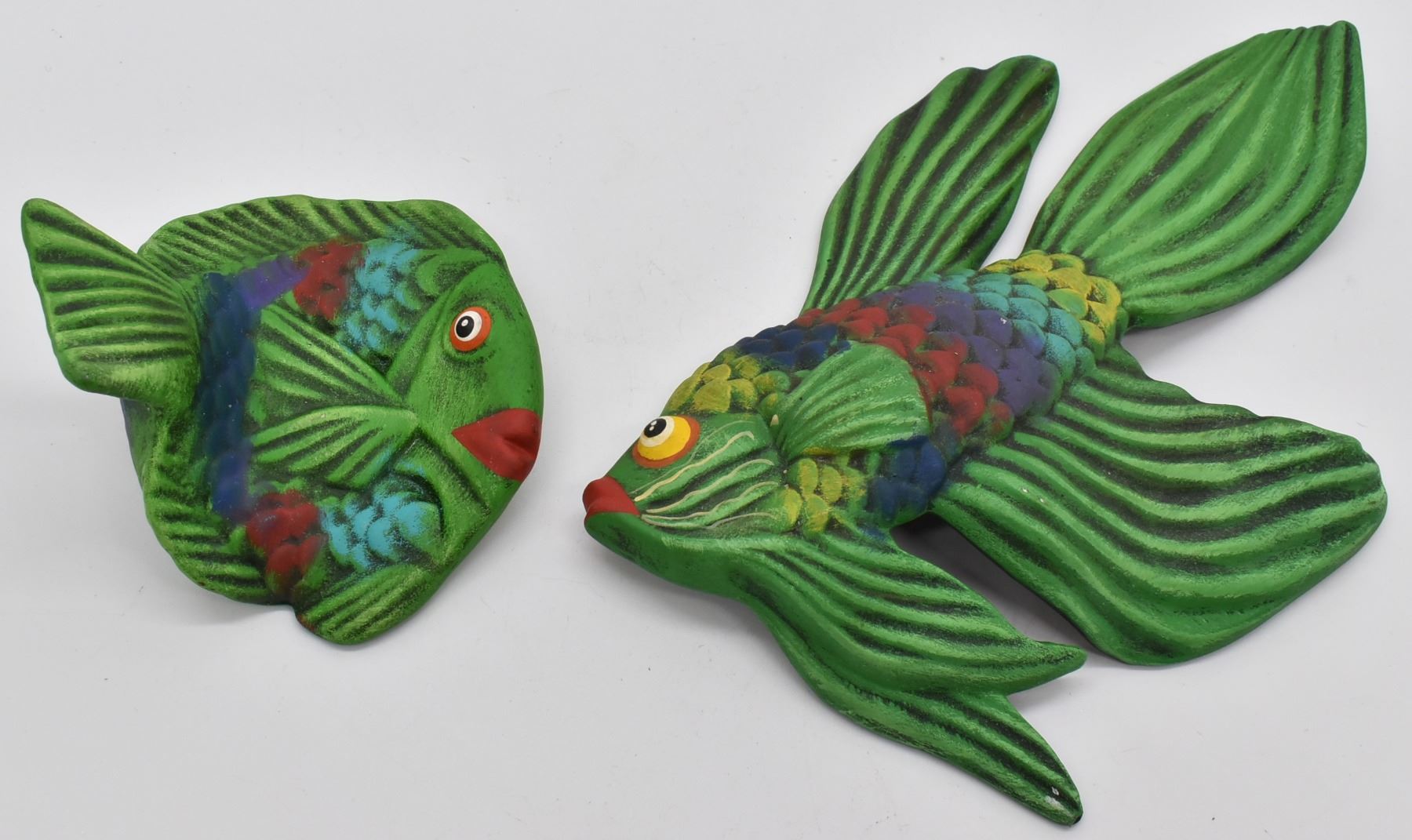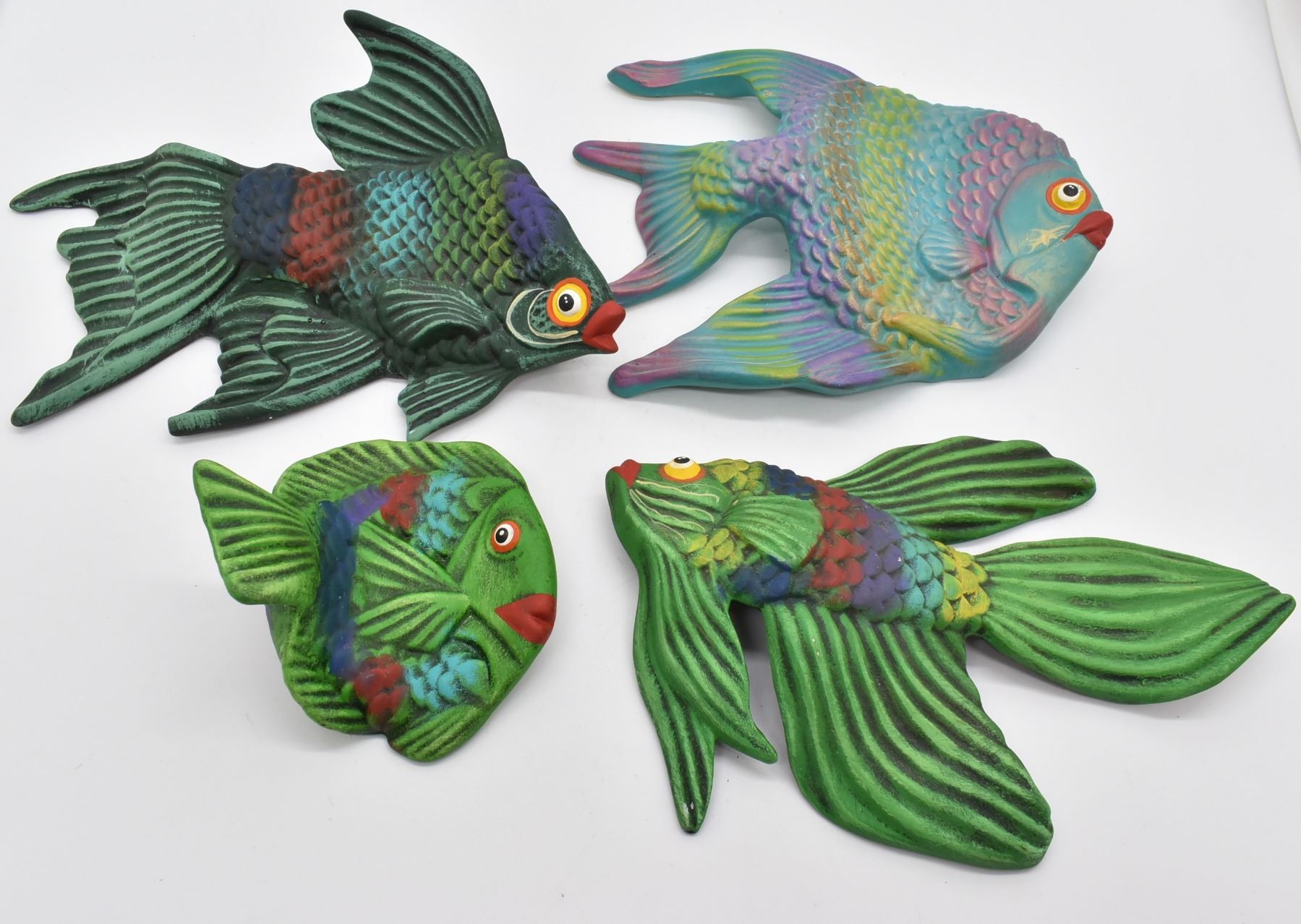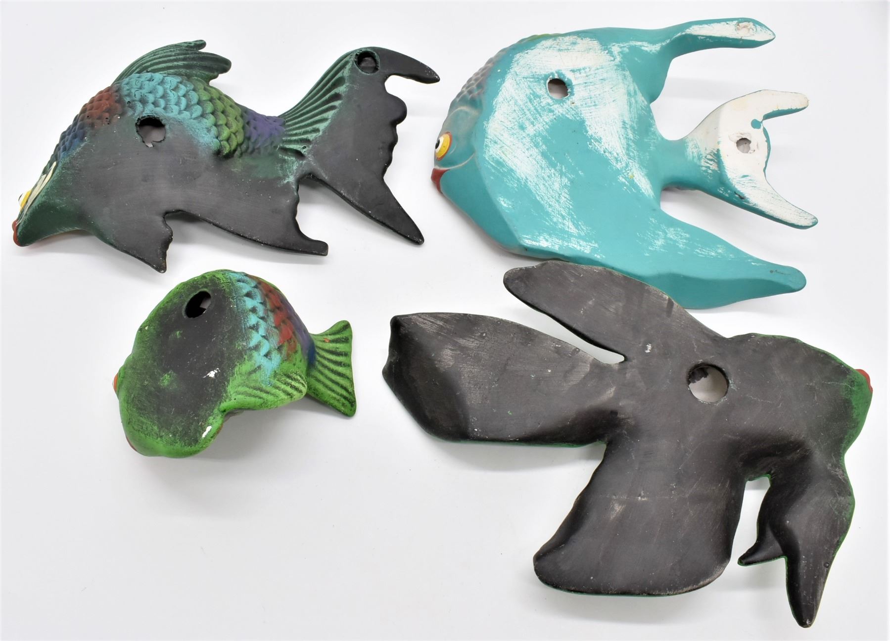 4 Vintage Hand Painted Ceramic Pottery Fish, largest measures 8'' x 10''