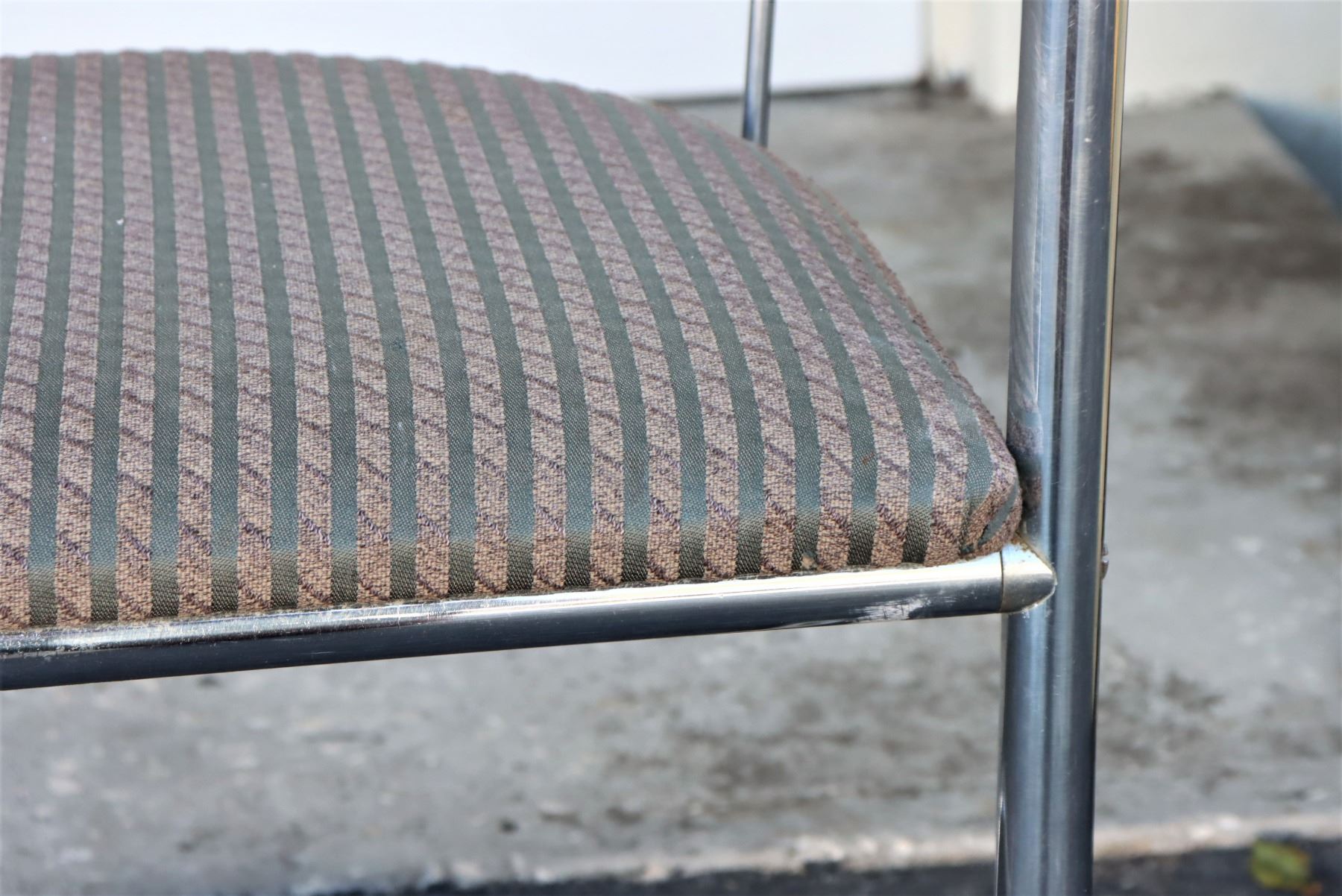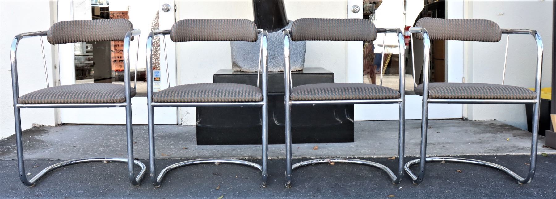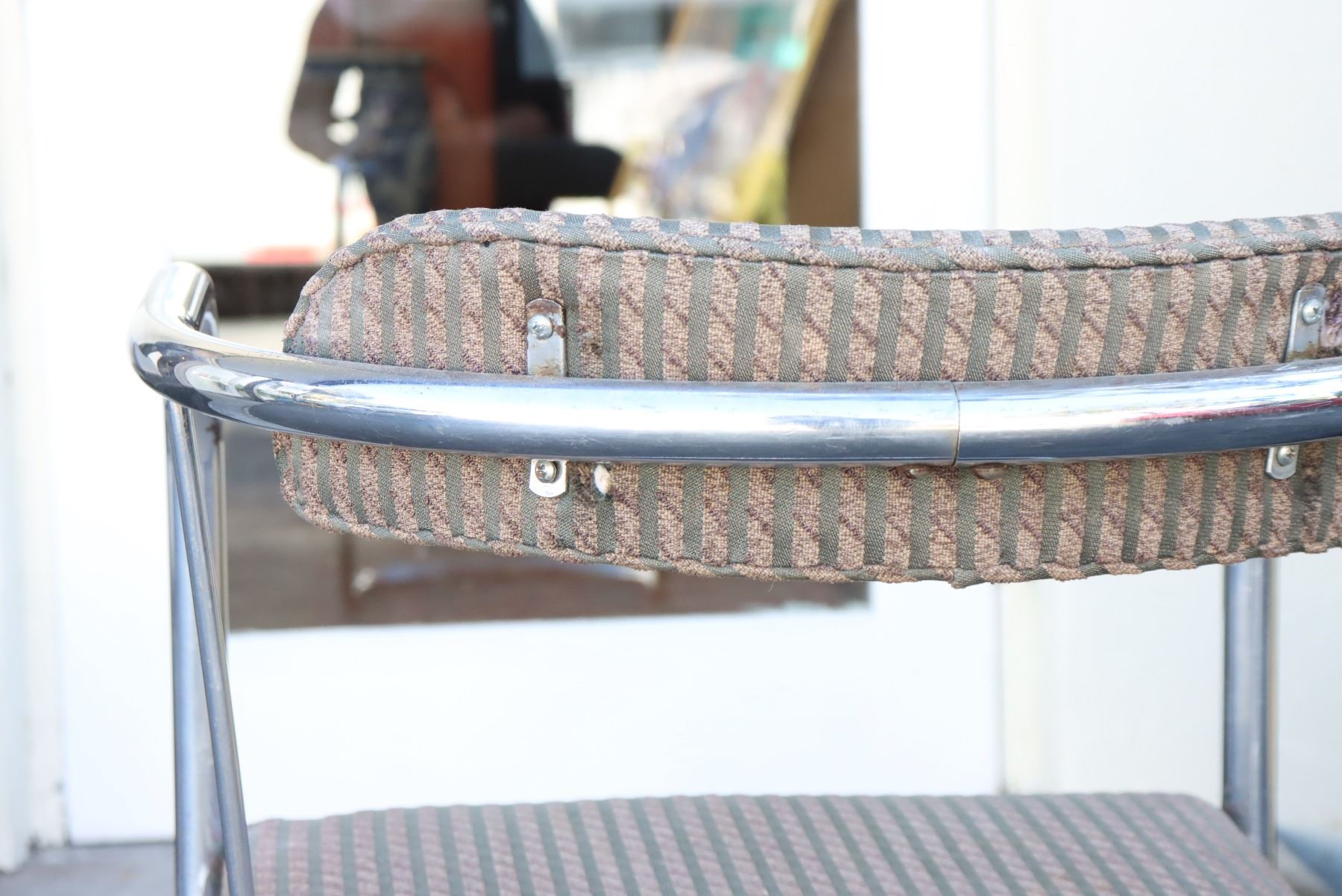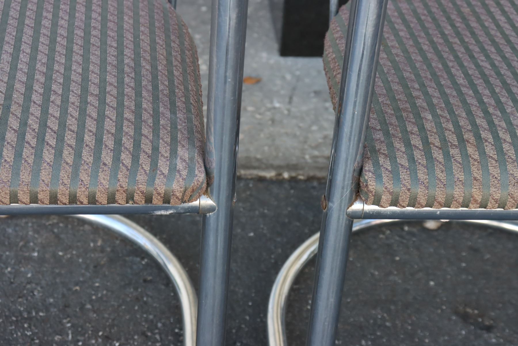 A set of four chrome & upholstered sling back kitchen chairs. Some wear to chrome.