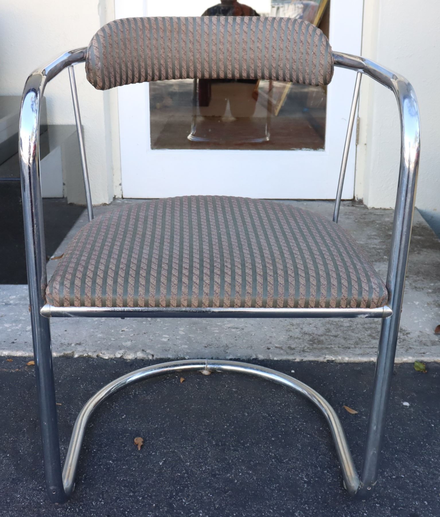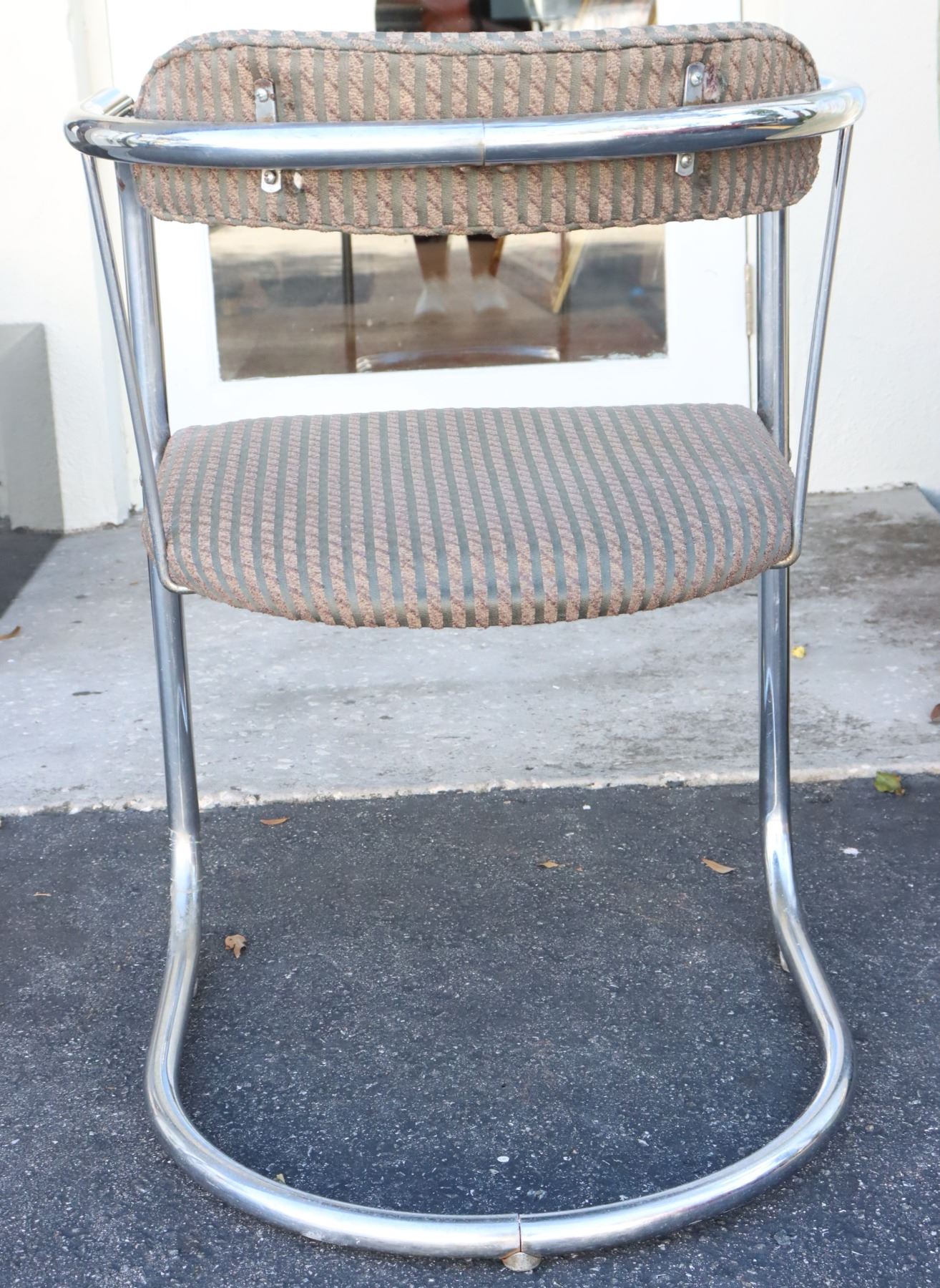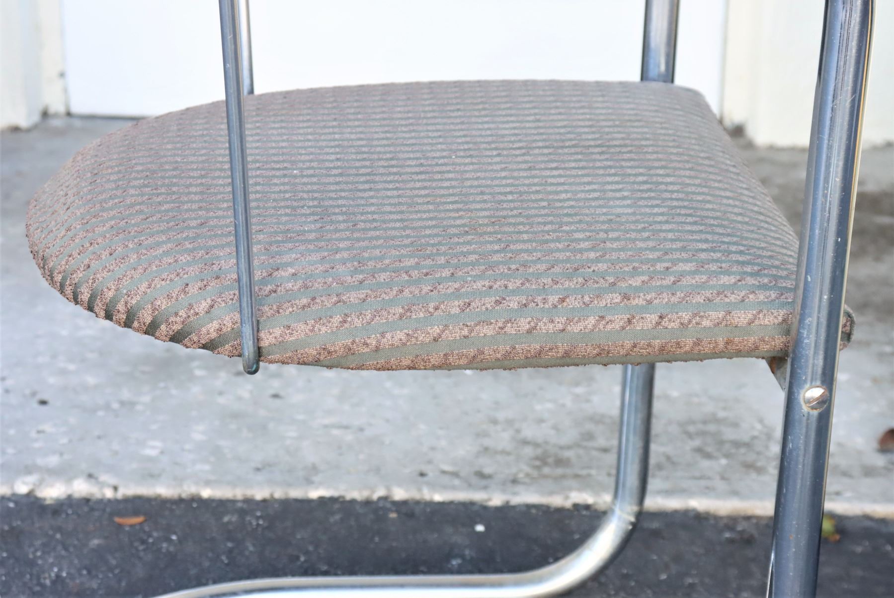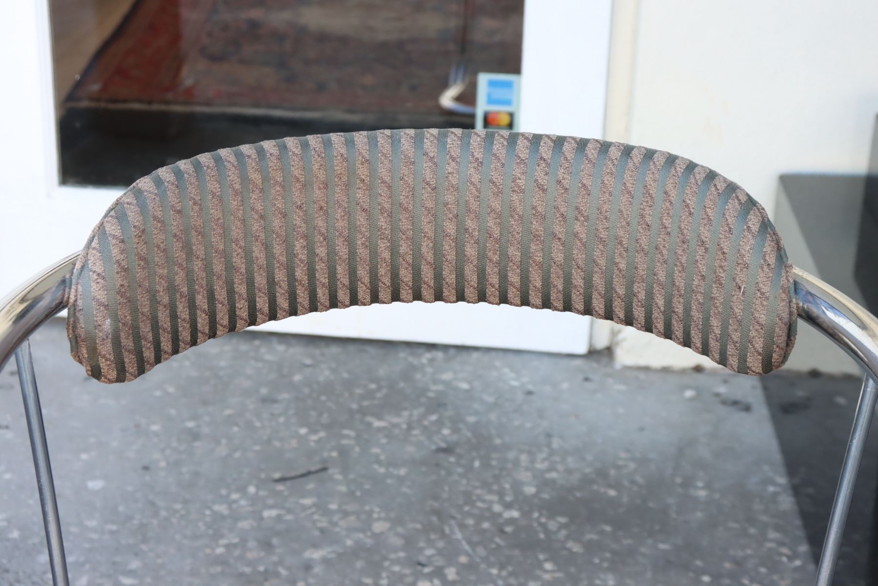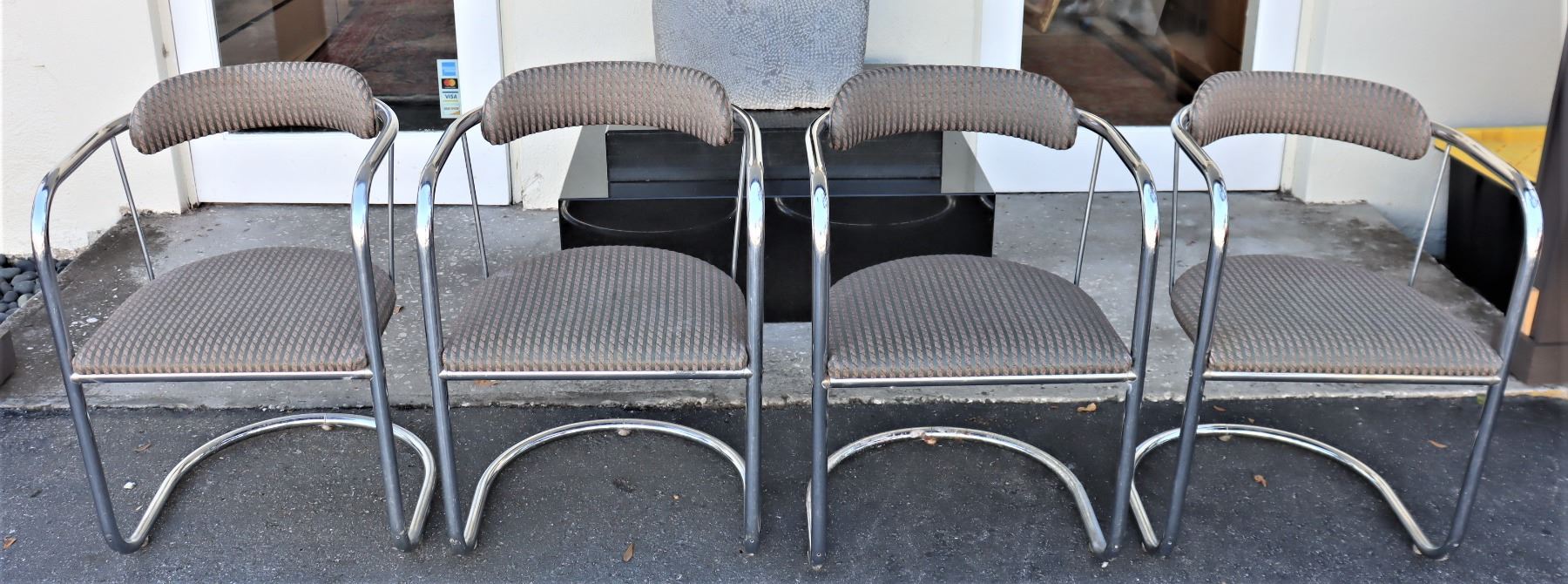 A set of four chrome & upholstered sling back kitchen chairs. Some wear to chrome.