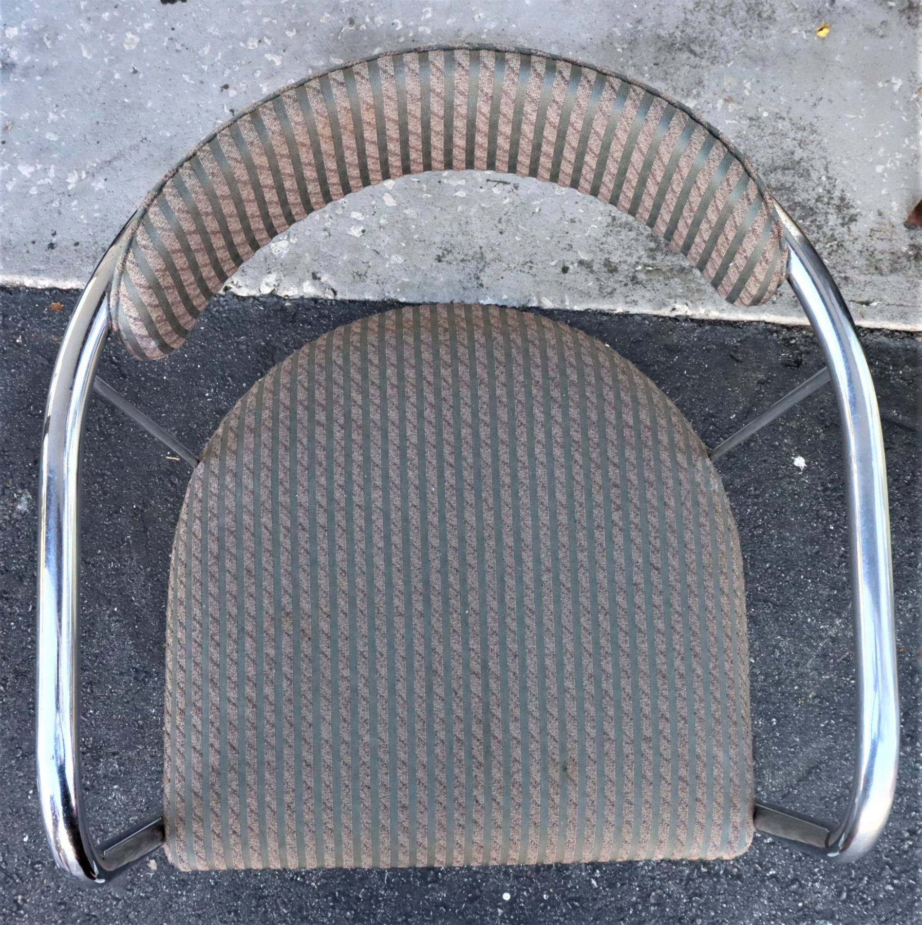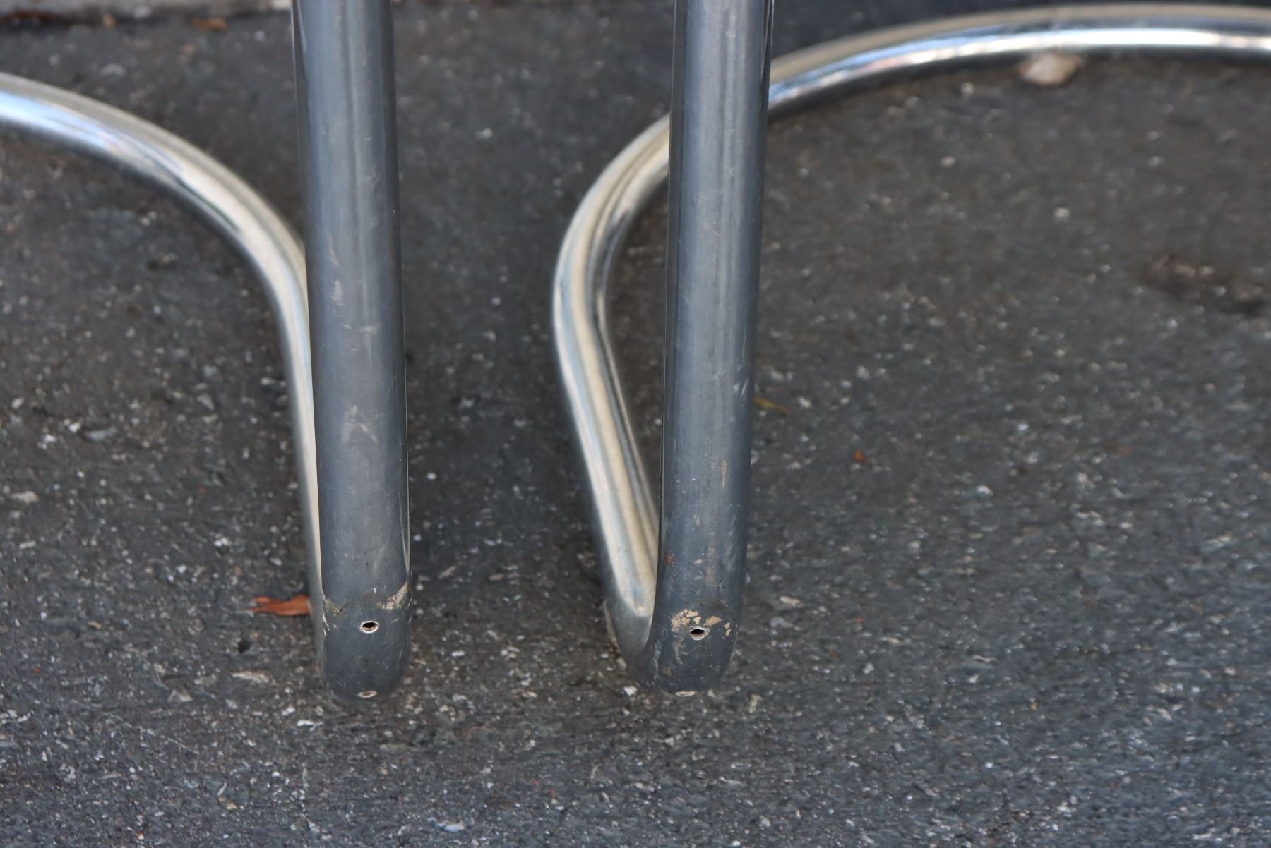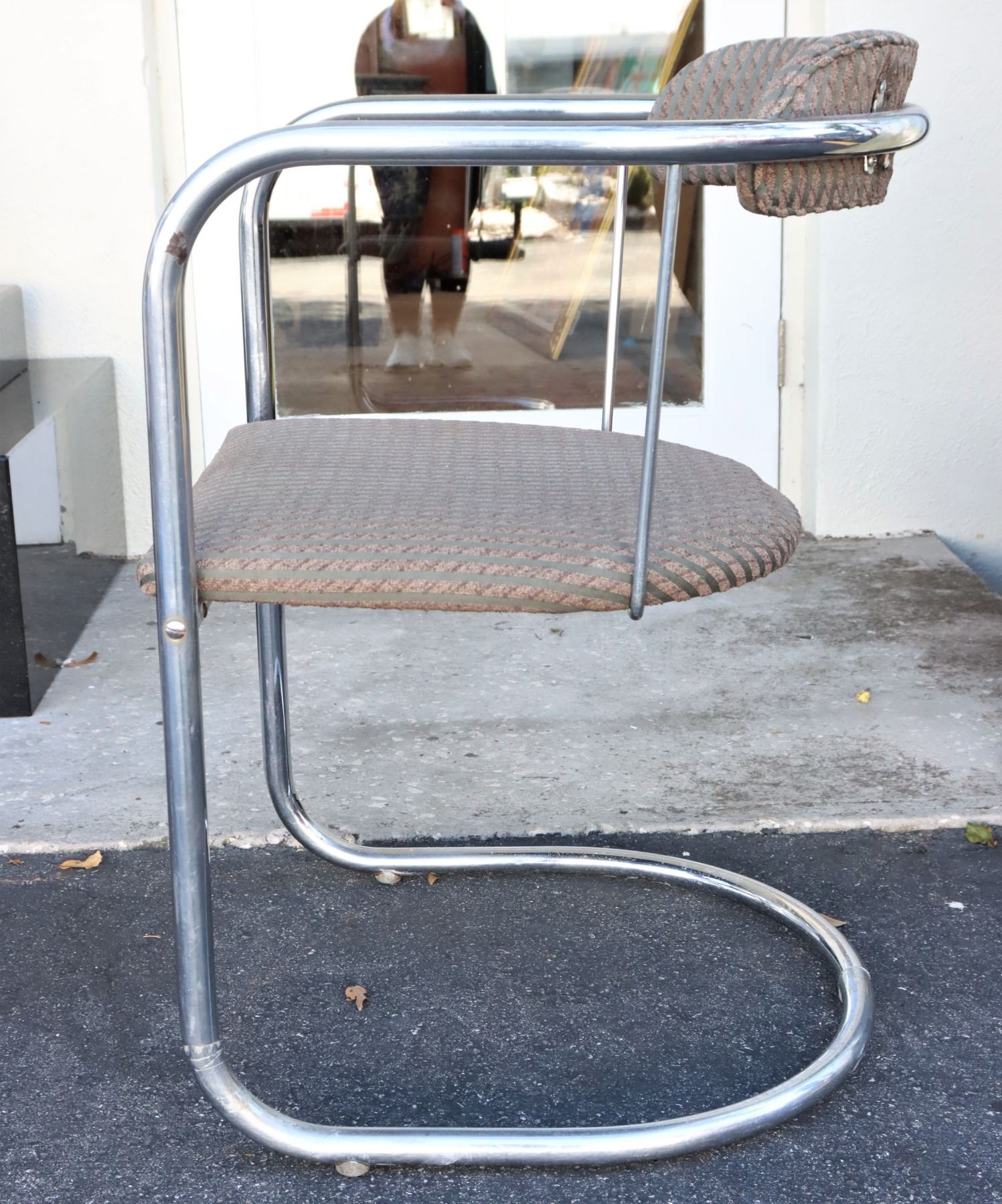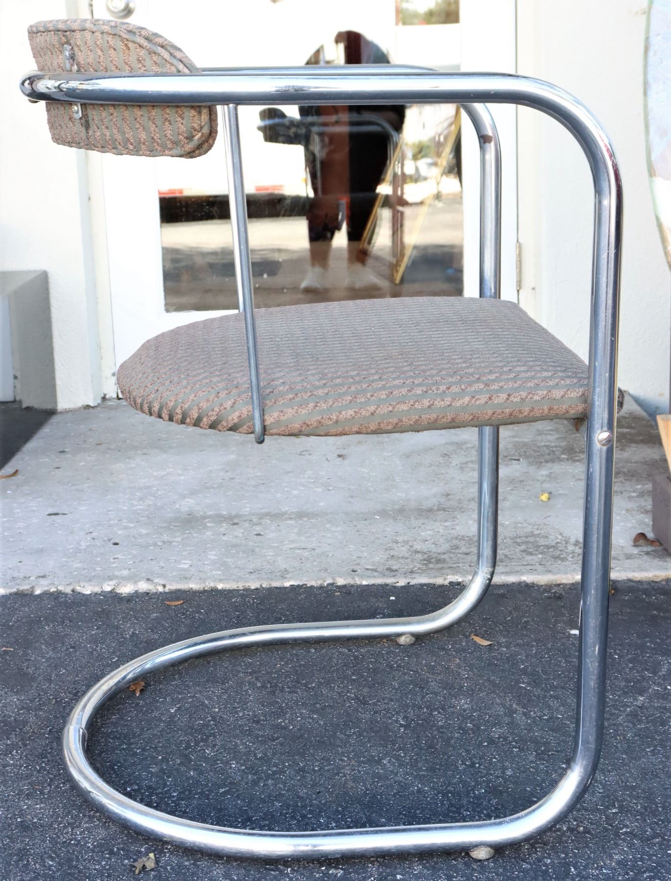 A set of four chrome & upholstered sling back kitchen chairs. Some wear to chrome.