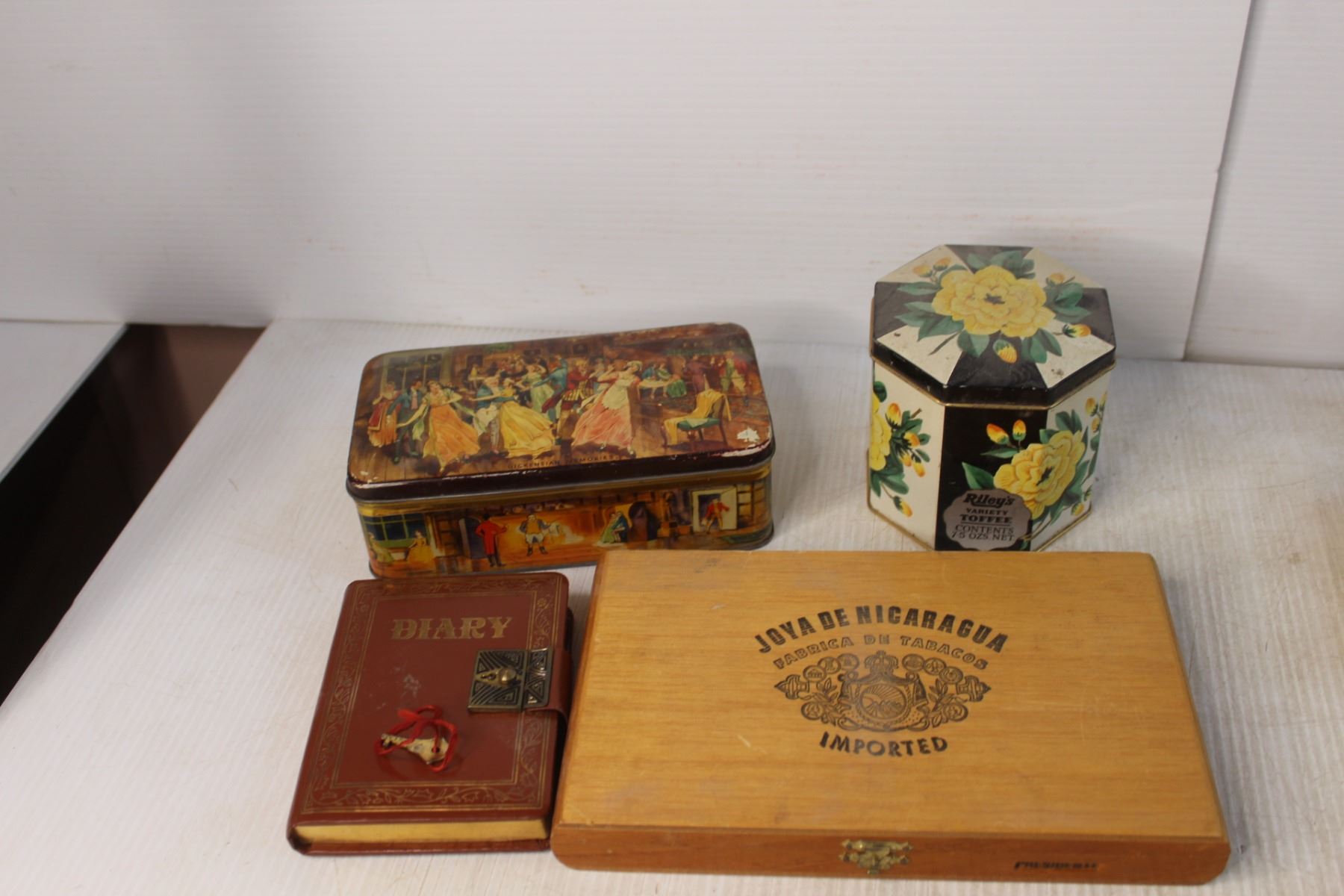 (4) Vintage Tins, (2) Cigar Boxes, Misc.