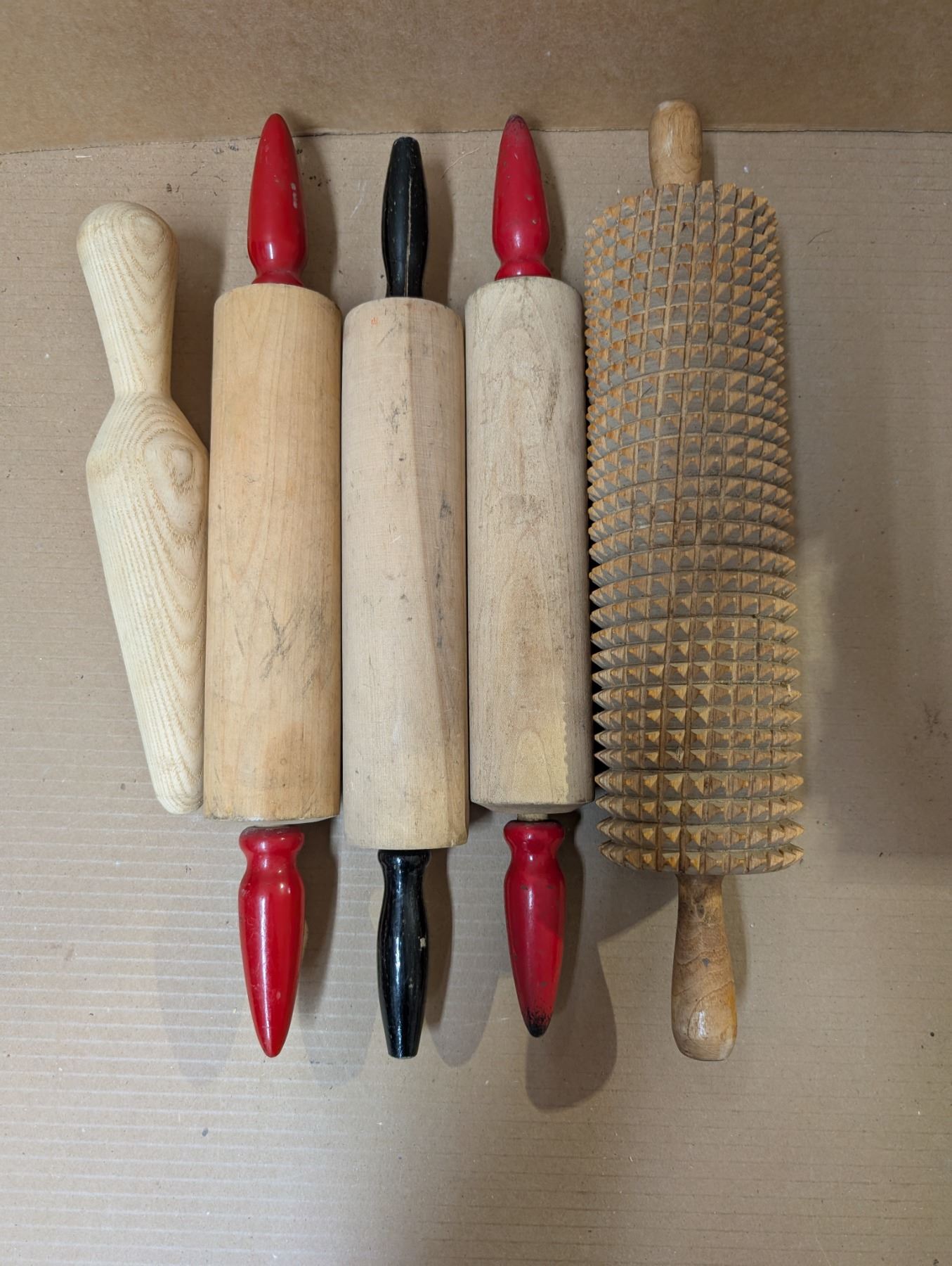 (4) Vintage Wooden Rolling Pins (1) Kruskal Vintage Rolling Pin and (1) Vintage Wooden Masher