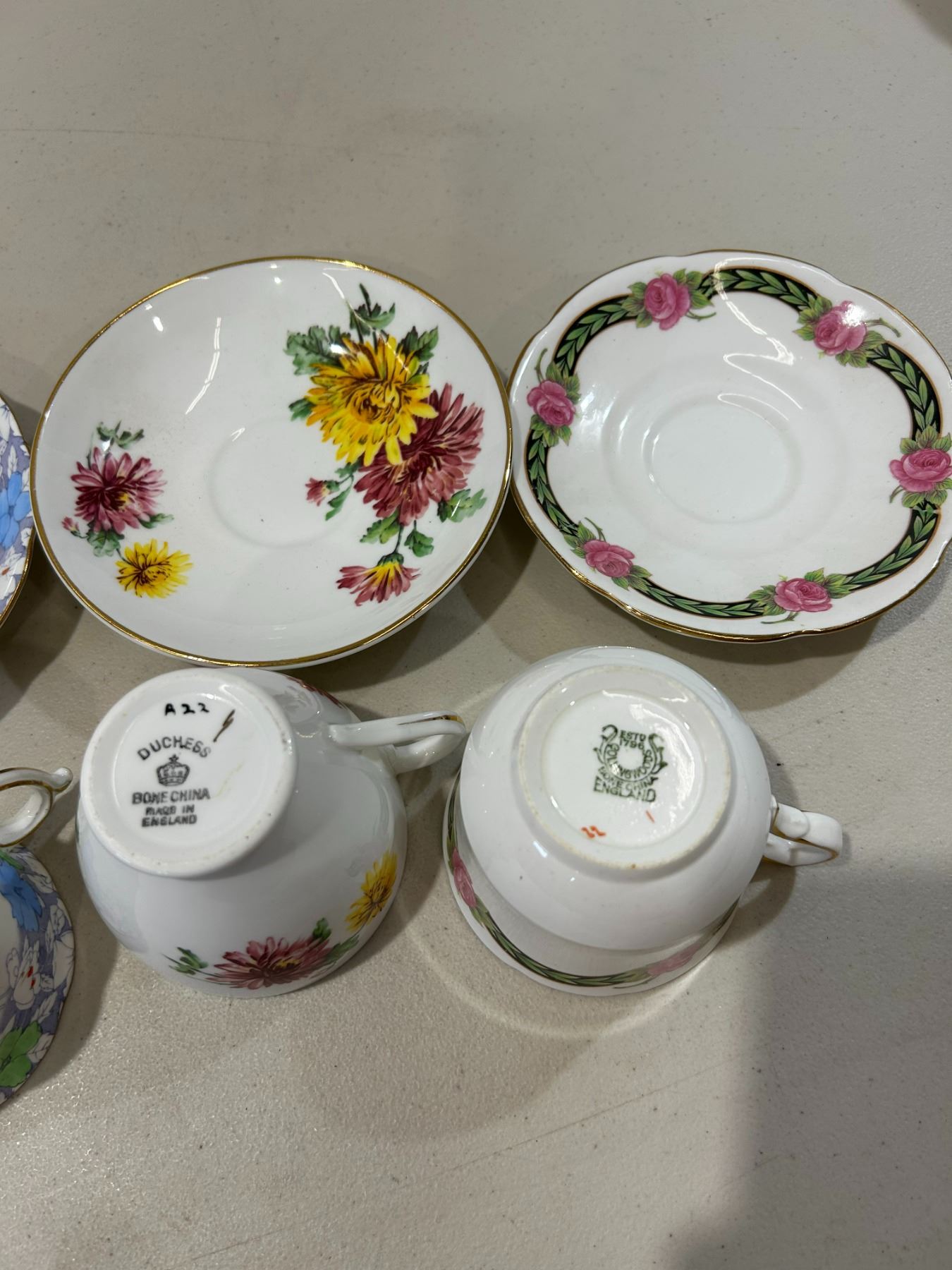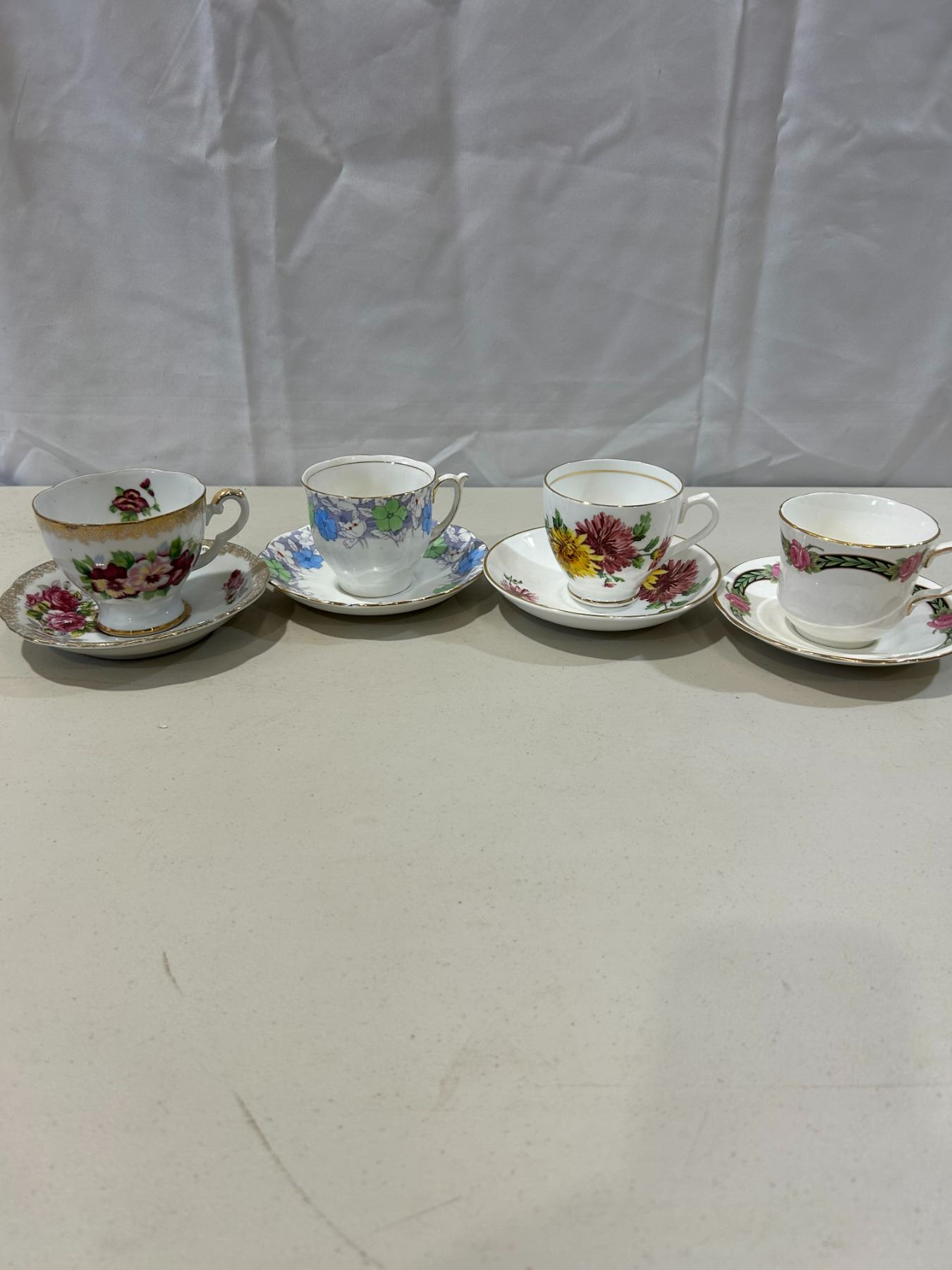4 Vintage teacups and saucers (Castle, Duchess, Belle & Collingwoods)