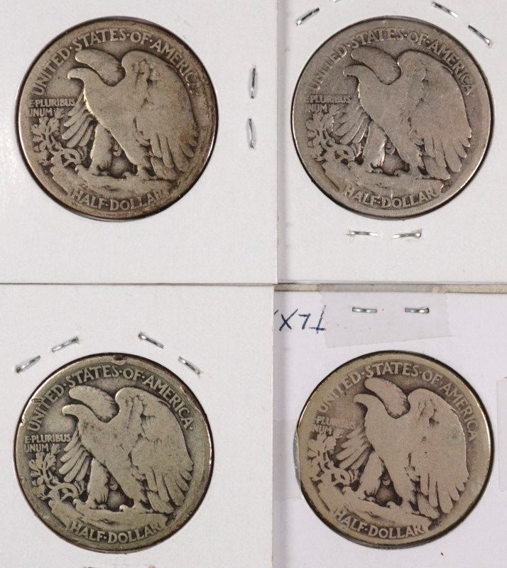(4) WALKING LIBERTY HALF DOLLARS (16, 16-D, 21-S, 16-D)