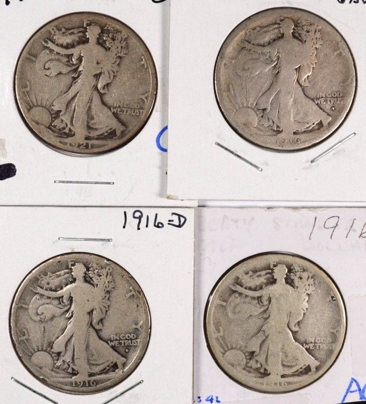 (4) WALKING LIBERTY HALF DOLLARS (16, 16-D, 21-S, 16-D)