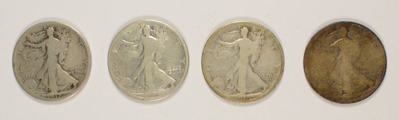 (4) WALKING LIBERTY HALF DOLLARS (1916, 1917, 1917-D OBV, 1917-D REV)