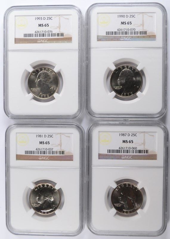 ( 4 ) WASHINGTON QUARTERS ALL NGC MS-65: 1981-D, 1987-D, 1990-D & 1993-D