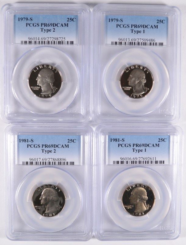 (4) WASHINGTON QUARTERS ALL PCGS PR-69 DCAM 79-S T-1, & T-2, 81-S T-1, T-2